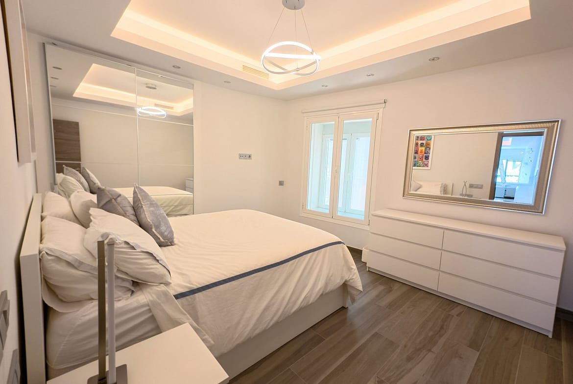 This impeccably renovated apartment is situated in the heart of Puerto Banus, Marbella, Malaga, delivering a quintessential Costa del Sol lifestyle. Featuring two bedrooms and two bathrooms, the property sits on the coveted with easy access to the Mediterranean Sea and the renowned marina. The prime location ensures that supermarkets, luxury boutiques, restaurants, banks, exclusive beach clubs, coffee shops, and the promenade are all within easy walking distance, while the acclaimed Puente Romano resort is accessible by car in just five minutes.