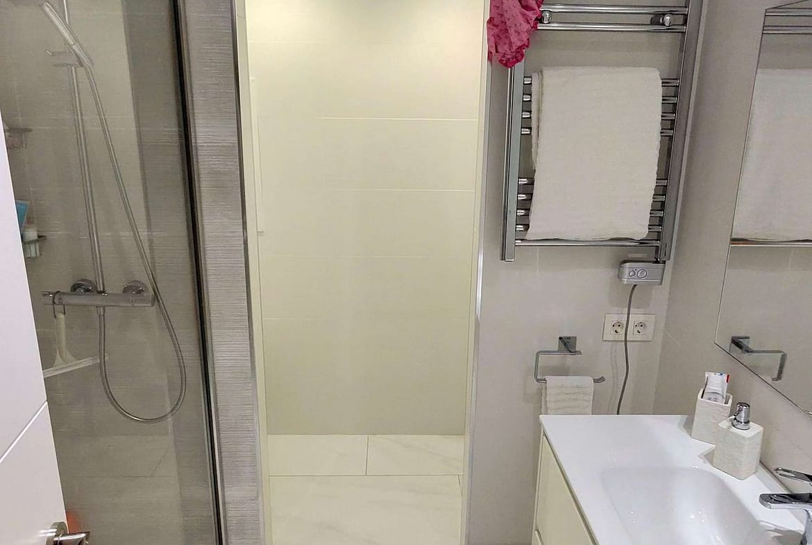 The property comprises two spacious bedrooms created for absolute comfort, along with two meticulously finished bathrooms that combine functionality with understated sophistication. The living and dining area, defined by clean and balanced lines, opens seamlessly to the exterior, enhancing the overall feeling of openness. The recently refurbished kitchen blends modern design with timeless appeal, perfectly complementing the character of the home.