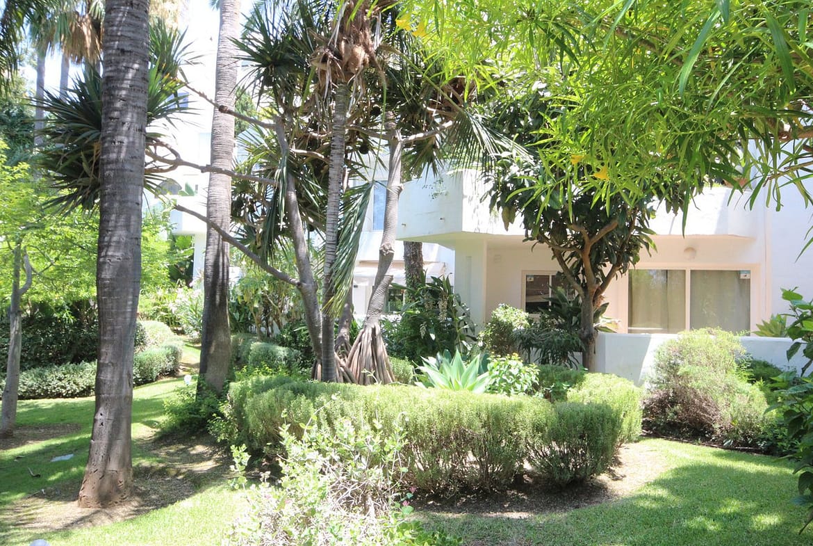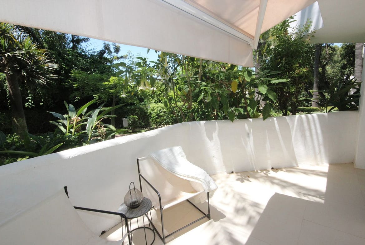 Discover this spacious ground floor apartment, a true gem in Marbella East, that perfectly combines romantic Andalusian-style architecture with a modern design and renovation.
