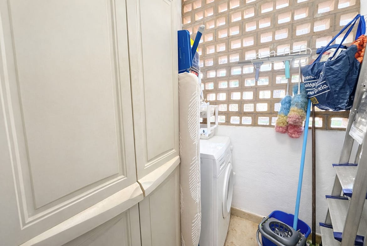 Ground floor apartment in a well established complex in the heart of Riviera del Sol. Large bright lounge diner with access to the closed sunny terrace and large private garden. Views over the communal gardens and paddle courts. Ample bedrooms with built-in wardrobes, 1 en-suite bathroom plus a lovely guest shower room. The kitchen has a serving hatch and plenty of workspace plus a separate utility room. Underground parking and storage room plus the use of the 2 communal swimming pools and paddle court. The commercial centre of Las Terrazas a short drive or 10 minute walk away with many options for dining out plus a supermarket for your everyday essentials