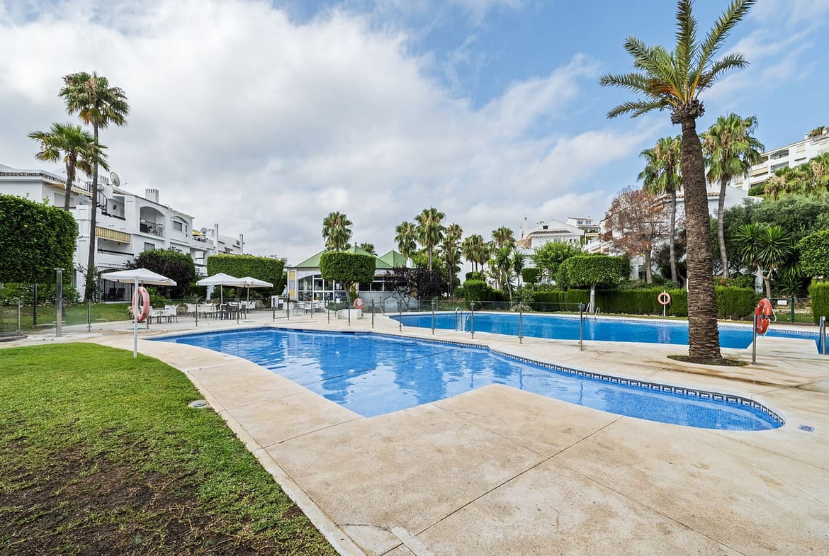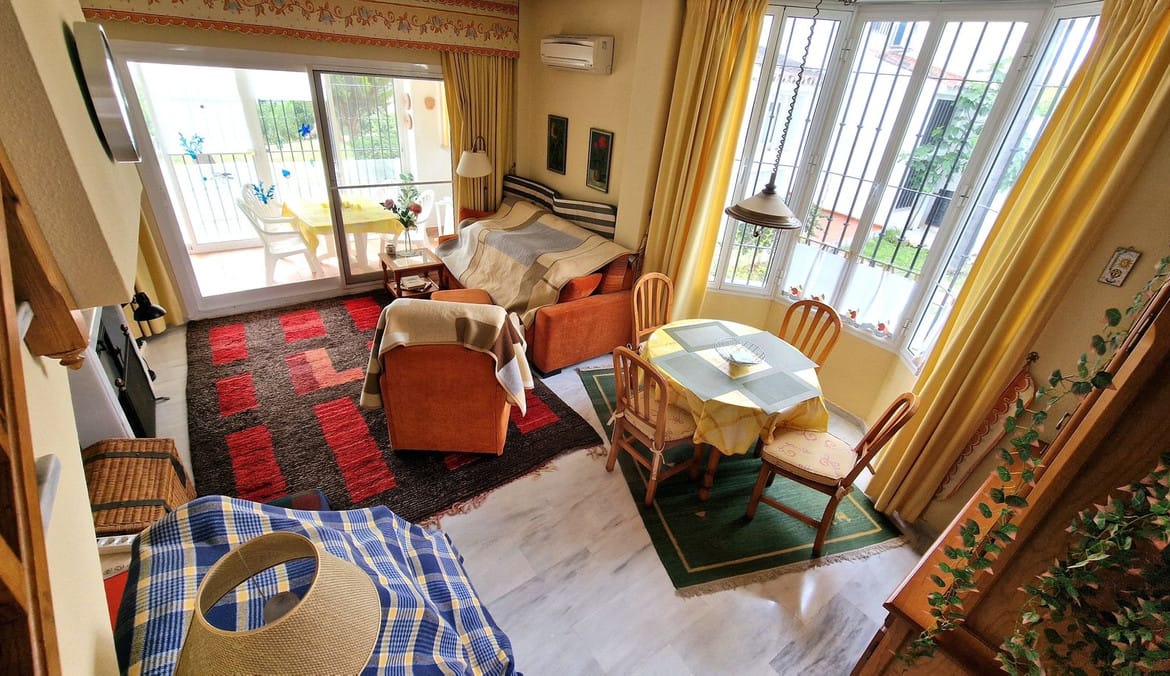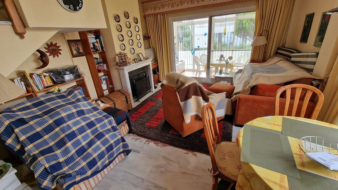 This two bedroom duplex apartment is in a great location close to the beach in Riviera del Sol, Mijas Costa. Located close to the Málaga airport (30minutes), the Málaga City (40minutes) and only about 20minutes to Marbella City. Upstairs you find two bedrooms and two bathrooms, both en-suite, as well as the master bedroom with access to a large terrace. Downstairs there is the entrance hall, a small toilet, the kitchen with a laundry room and the large living room leading on to the terrace. Also you enjoy a small private garden. A private garage, close to the urbanization, is included in the sale price! Beautiful community with large gardens and two community pools.
