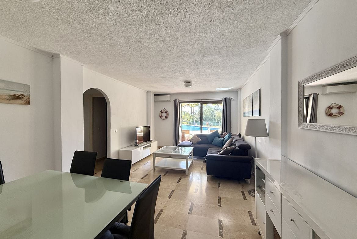 Fabulous ground floor apartment with direct access to stunning community gardens and pool. With rental licence!! This wonderful apartment is located in the heart of Riviera del Sol, immediately next door to Riviera Sports Club, with its vast array of activities including tennis, padel and gymnasium. Within a short walk are a selection of bars, restaurants, shops, the beach and public transport and Miraflores Golf and Tennis Club closeby too!