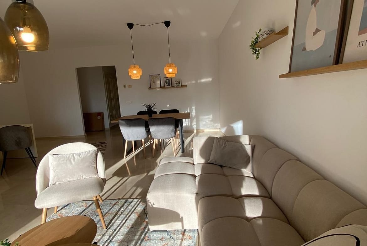 The apartment is offered fully furnished and features 2 spacious bedrooms, a bright living area that seamlessly combines a dining space, home office, and a cozy reading corner, as well as 2 full bathrooms. It offers 120 m² of interior living space, complemented by a 22 m² terrace, for a total of 142 m² built, providing an ideal balance between indoor comfort and outdoor living.
