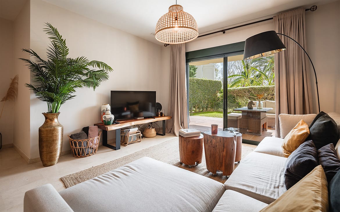 Located in a prestigious frontline golf gated community in Guadalmina Alta, this beautifully renovated ground-floor apartment offers a perfect combination of modern comfort, privacy and a prime golf-side setting. The community features 24-hour security, landscaped gardens with generous open green areas, a communal swimming pool and a gym, creating a peaceful and secure residential environment.