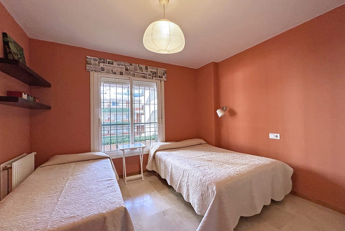 This apartment of over 90 m² offers a comfortable and bright layout, ideal for everyday living or as a second home on the Costa del Sol. It has two bedrooms and two full bathrooms, the master bedroom being en suite and with direct access to the terrace. The kitchen is separate and fully equipped, and the spacious living room has a dining area and access to a pleasant covered terrace of over 18 m² with unobstructed views and west-facing. A parking space is included.