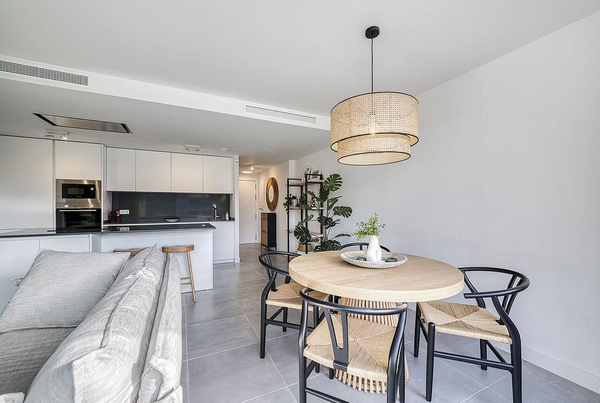 Designed with a contemporary concept, the apartment offers plenty of natural light, a well-balanced layout and high-quality finishes. The living area flows seamlessly onto the terrace, allowing indoor and outdoor living to blend perfectly — ideal for enjoying the Mediterranean climate all year round. The apartment enjoys a south-west orientation, ensuring abundant sunlight throughout the entire day. The property is sold with an underground parking space and storage room.