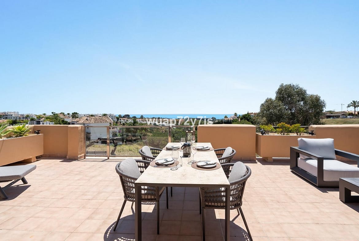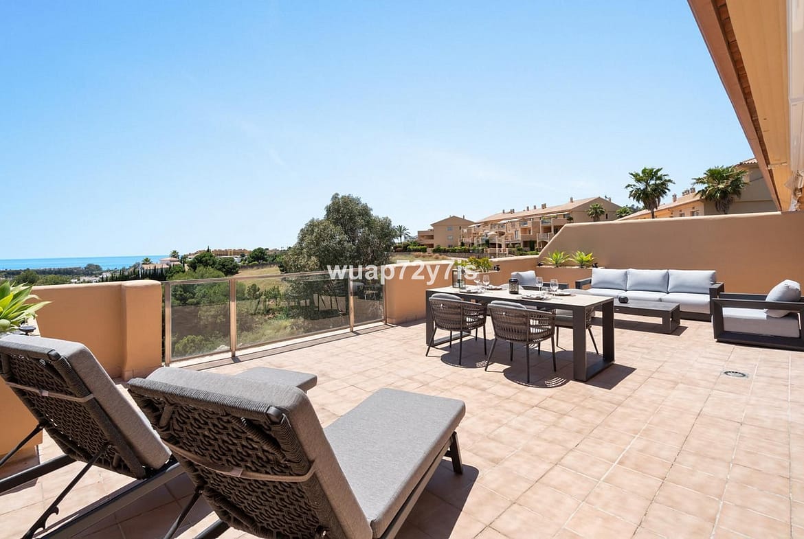 This beautifully renovated and fully furnished top-floor penthouse is located in the peaceful and up-and-coming Selwo area of Estepona, within the La Resina Golf resort.