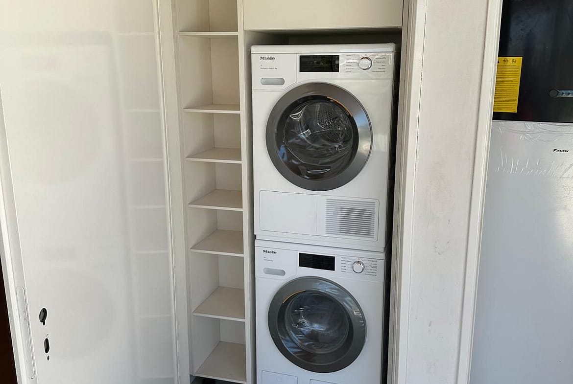 Inside, the apartment showcases the highest quality finishes and contemporary design. The fully equipped kitchen features premium Miele appliances, including a double American-style refrigerator, wine cooler, washing machine and dryer. The bedrooms are elegantly appointed with fitted wardrobes, and the layout has been carefully designed to maximize space, comfort and natural light.