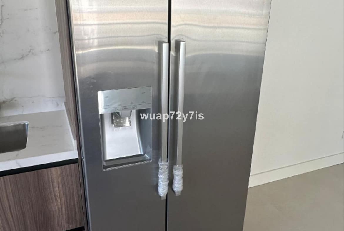 Inside, the apartment showcases impeccable craftsmanship and high-end contemporary design. The fully equipped designer kitchen features premium appliances by Miele, including a double American-style refrigerator, wine cooler, washing machine, and dryer. Every element has been carefully selected to combine functionality with refined aesthetics.
