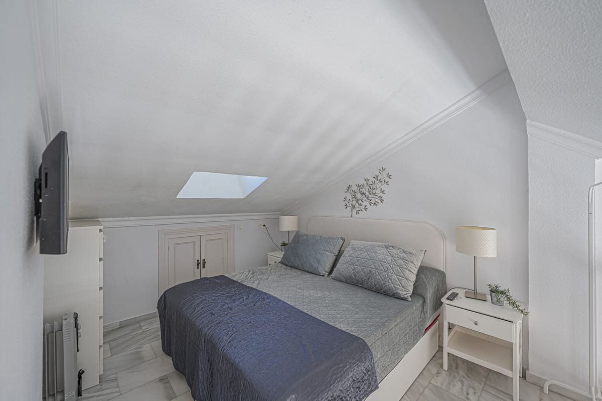 This bright duplex penthouse offers two bedrooms, two bathrooms, a living room with an open-plan kitchen, and a terrace with stunning sea views.