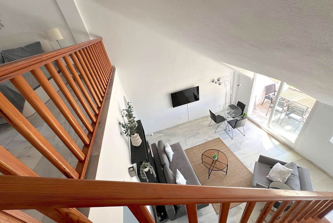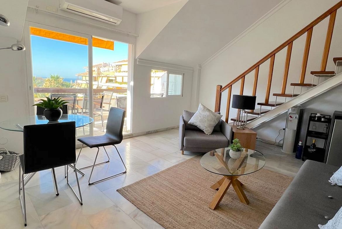 Located within one of the most sought-after gated communities on Marbella’s Golden Mile, this elegant duplex boasts a coveted south-facing orientation with open views over beautifully landscaped gardens, a large communal swimming pool, and partial sea views.