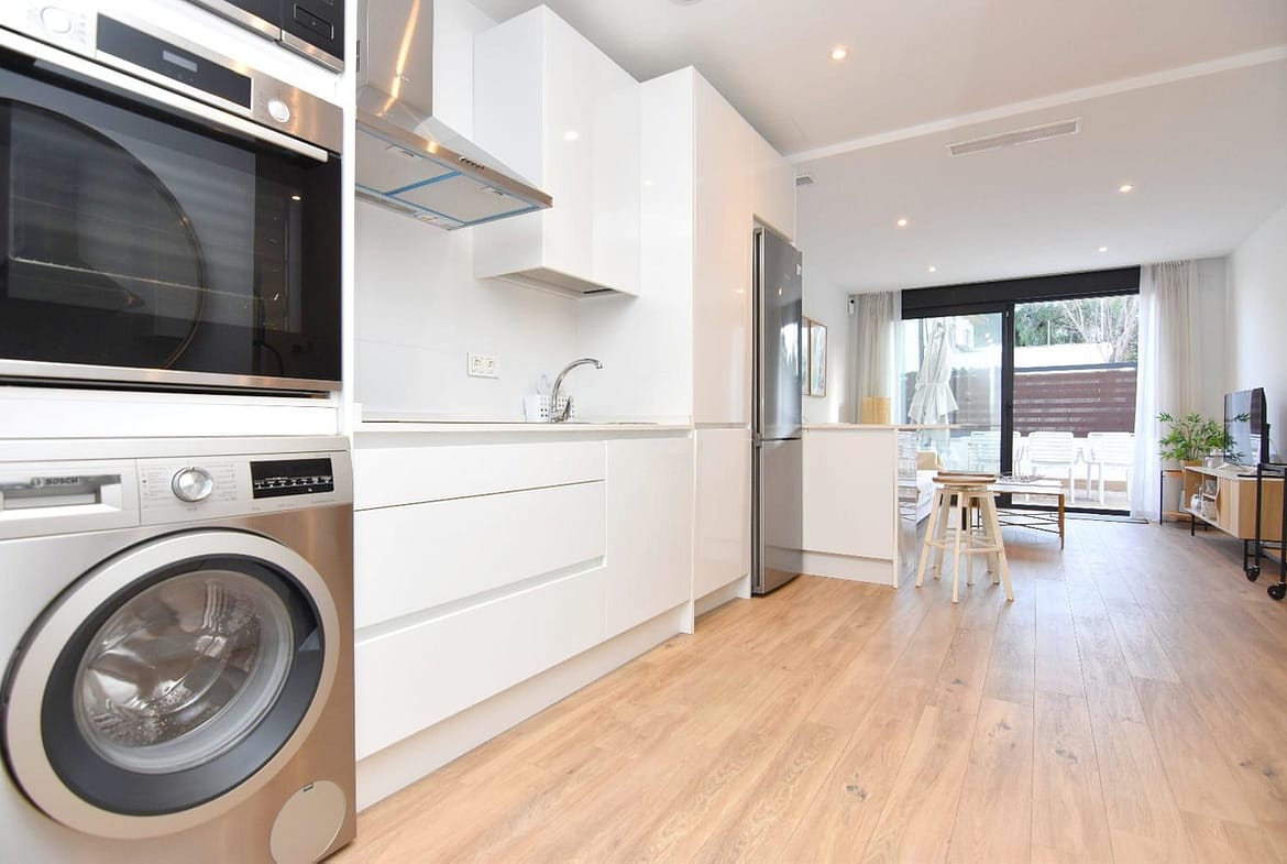 The property, built in 2021, has 90 m2 of interior space distributed over two bedrooms, a full bathroom + a toilet, with a modern and functional design. Located on the ground floor and on the corner, it is part of a contemporary building with few neighbours, well maintained and cared for with solar panels and a communal solarium terrace.