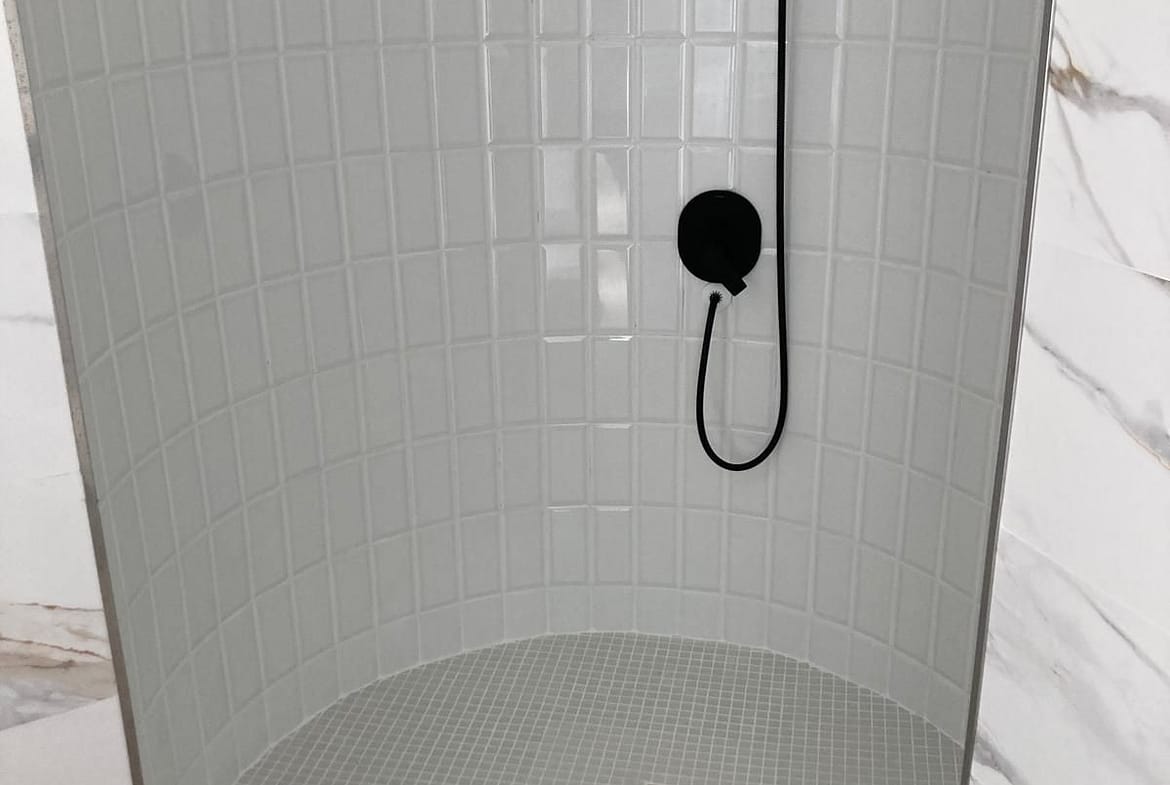 1 full bathroom with a large shower.