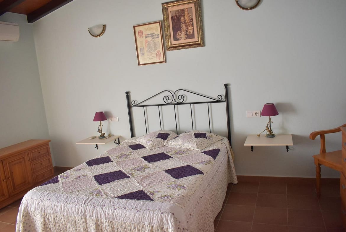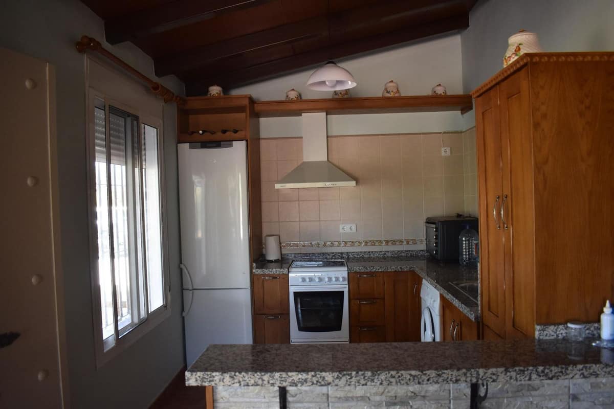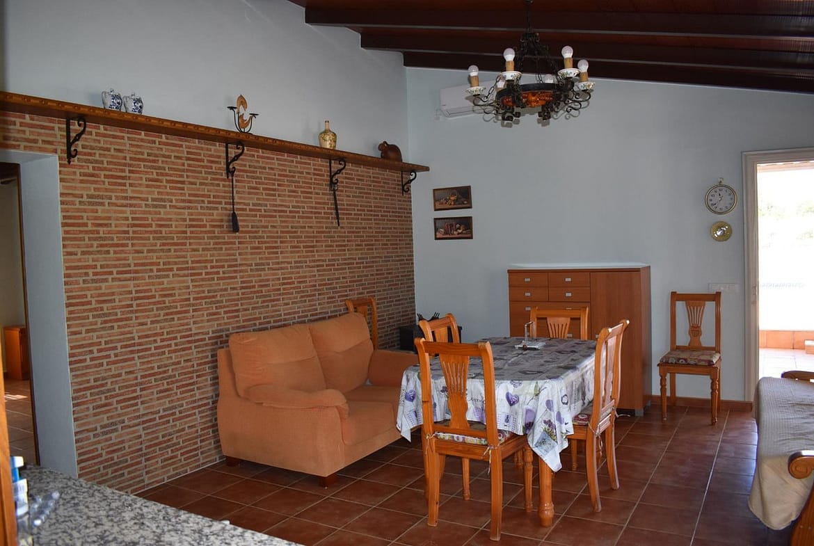 Upon entering the house we have a living-dining room with wooden beams and access to the terrace, a fitted kitchen, a large bedroom with a built-in wardrobe and a full bathroom, as well as a large room that could easily be converted into other bedrooms and a bathroom.Outside there is a large parking area, barbecue as well as 56m2 chicken coops ideal for stables. The plot is planted with a variety of fruit trees (walnut, fig, olive, orange, custard apple…), fully fenced and with its own well registered with the Junta.