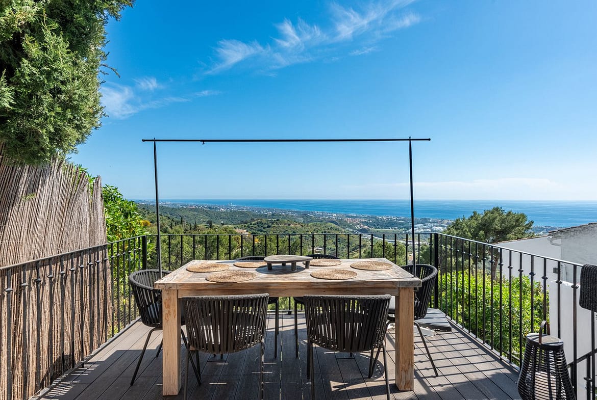 Nestled in the charming Andalusian pueblo of Altos de Los Monteros, this beautifully refurbished townhouse offers breathtaking panoramic views over the Mediterranean Sea and Marbella. Surrounded by nature and set within a peaceful community of traditional Andalusian-style homes, the property provides the perfect balance of tranquility and convenience—just a 5-minute drive from Marbella’s vibrant town centre.