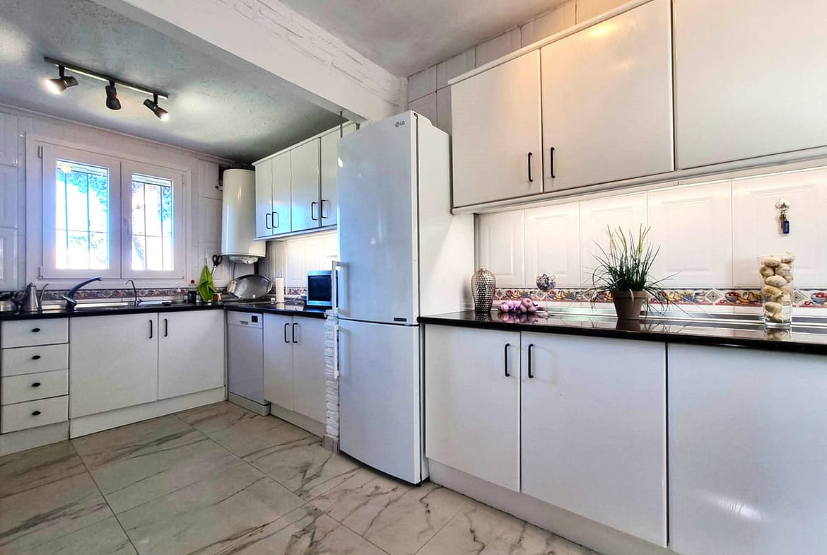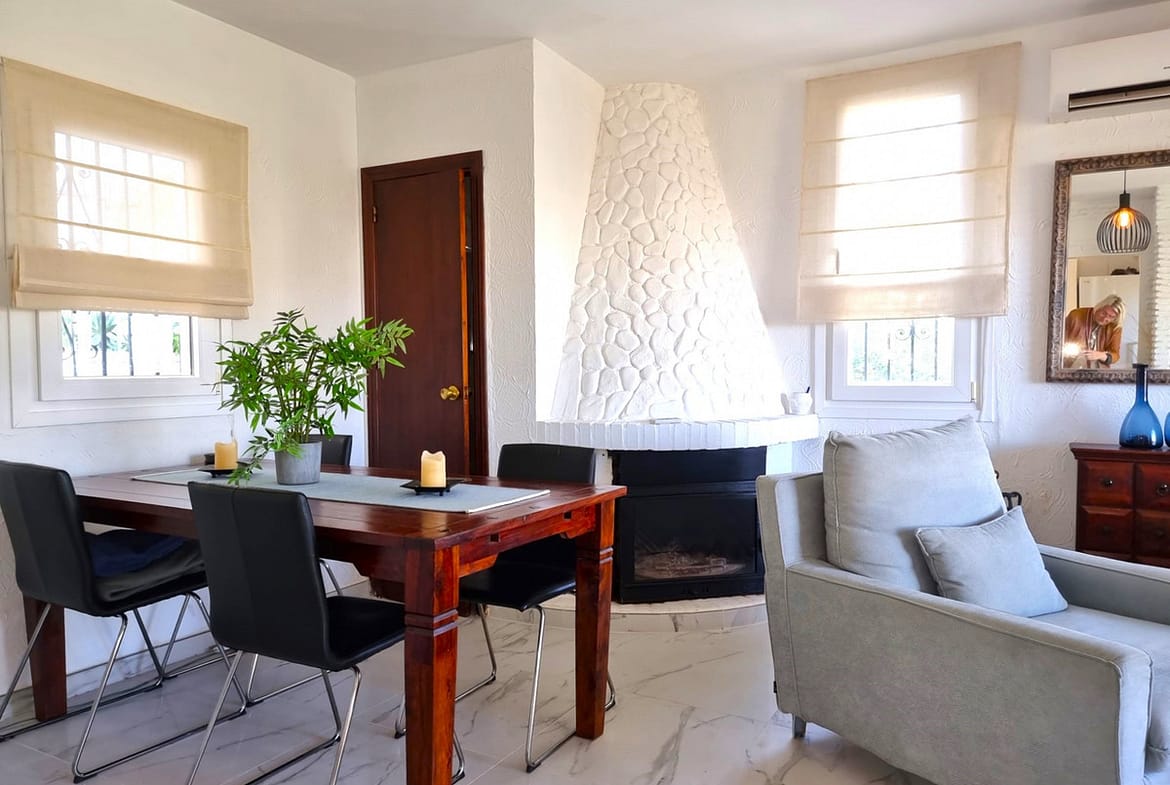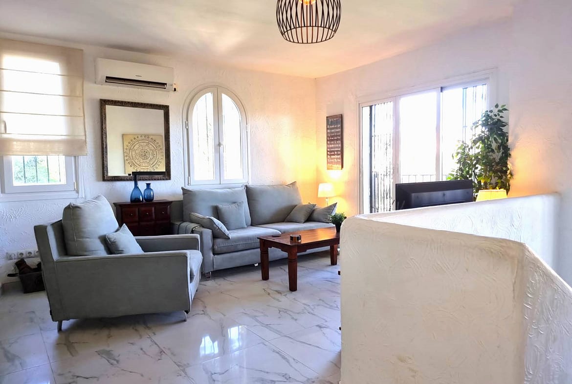 Set within an enchanting Andalusian-style development, this elegant semi-detached residence perfectly blends rustic charm with refined contemporary interiors—all just a short 300-metre stroll from the beach.