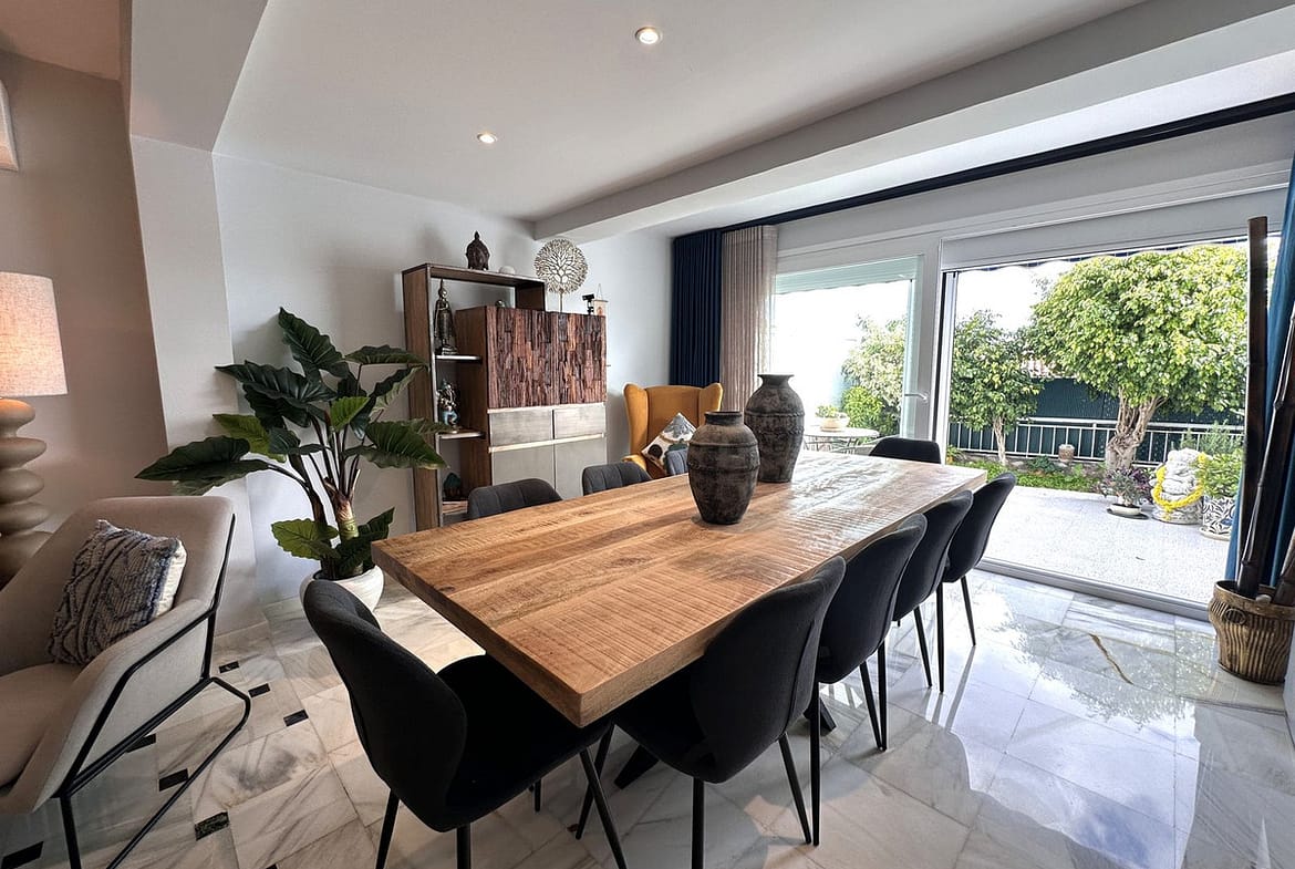 Upon entering, you are welcomed by a spacious and bright open-plan living and dining area, perfect for entertaining or relaxing in total comfort. Large sliding doors connect the interior with a generous private patio, ideal for al fresco dining or creating a chill-out space.