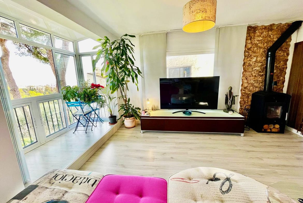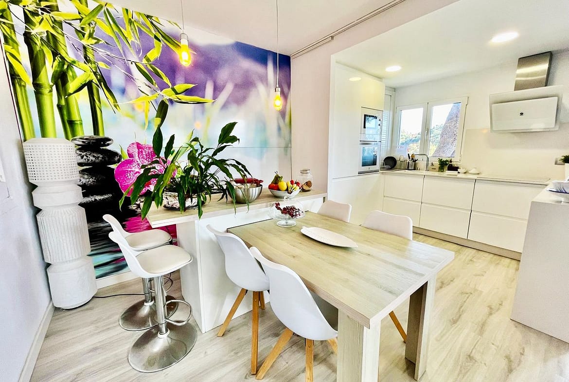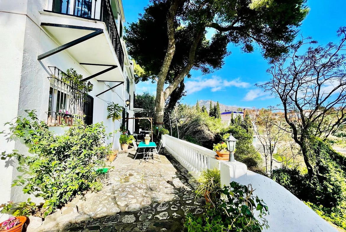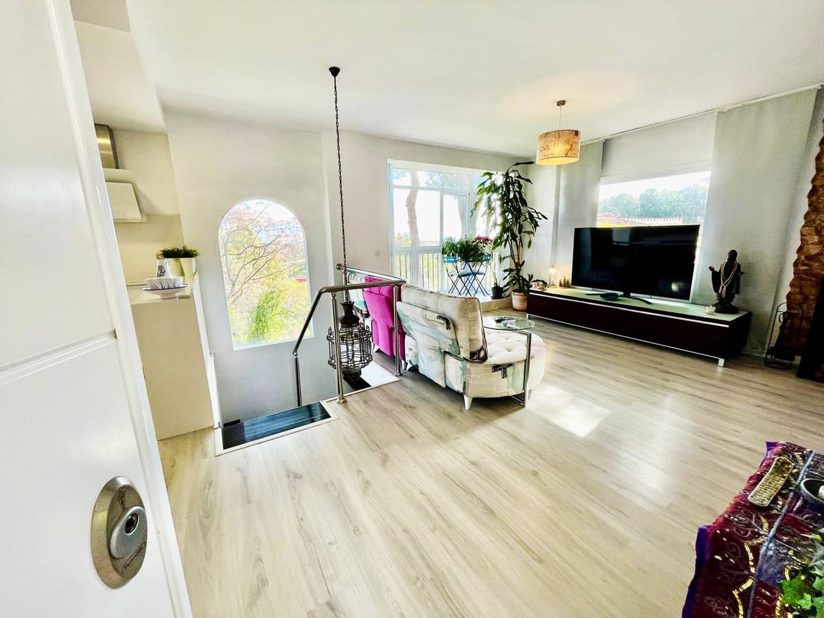 Imagine waking up every morning to sunlight streaming through large windows and gazing out at the sea and mountains from your own living room. This charming terraced house in Benalmádena offers just that: