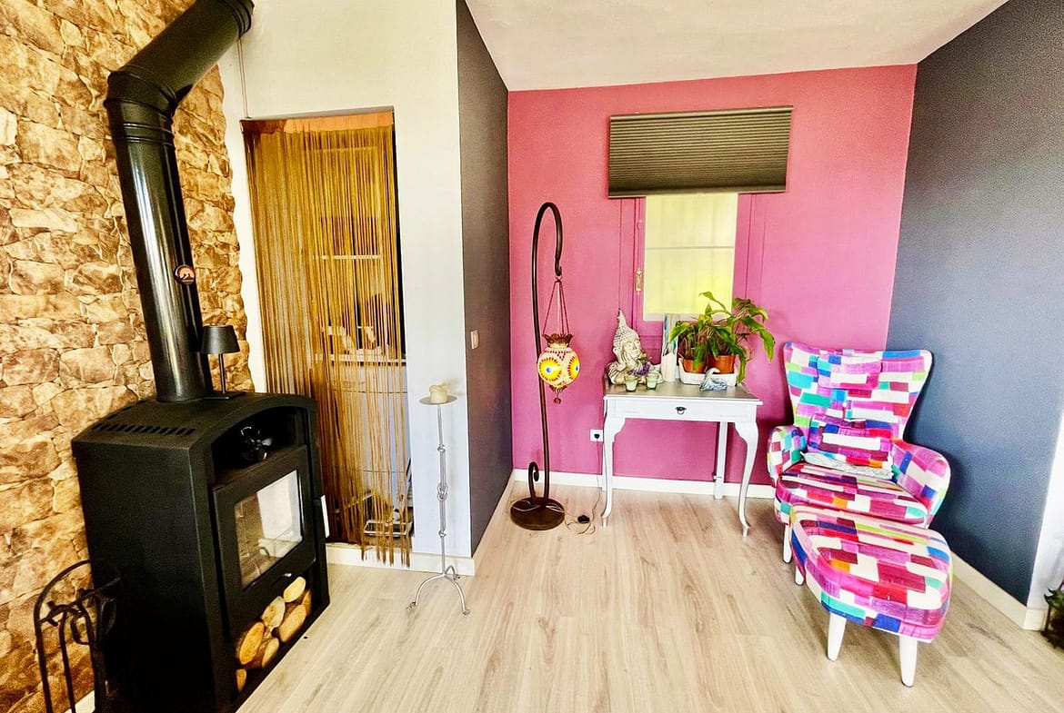 Upstairs, the property surprises with a spacious living-dining room filled with natural light, where the fireplace provides warmth and creates a cosy atmosphere all year round. The modern, perfectly integrated open-plan kitchen is the heart of the home, ideal for sharing moments with family or friends.