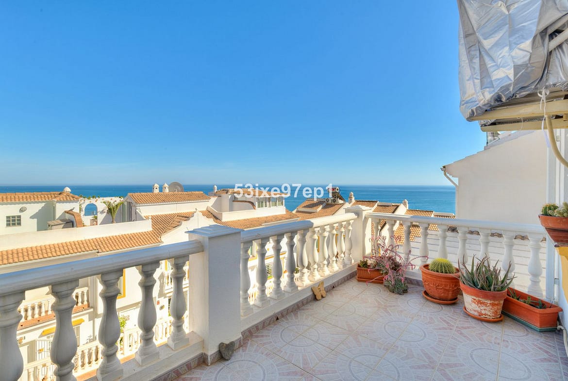 Another flight of stairs leads to the roof terrace facing west with a magical view down to the entire coastline of Carvajal/Torreblanca/Los Boliches and Fuengirola and towards the mountains to the northwest.