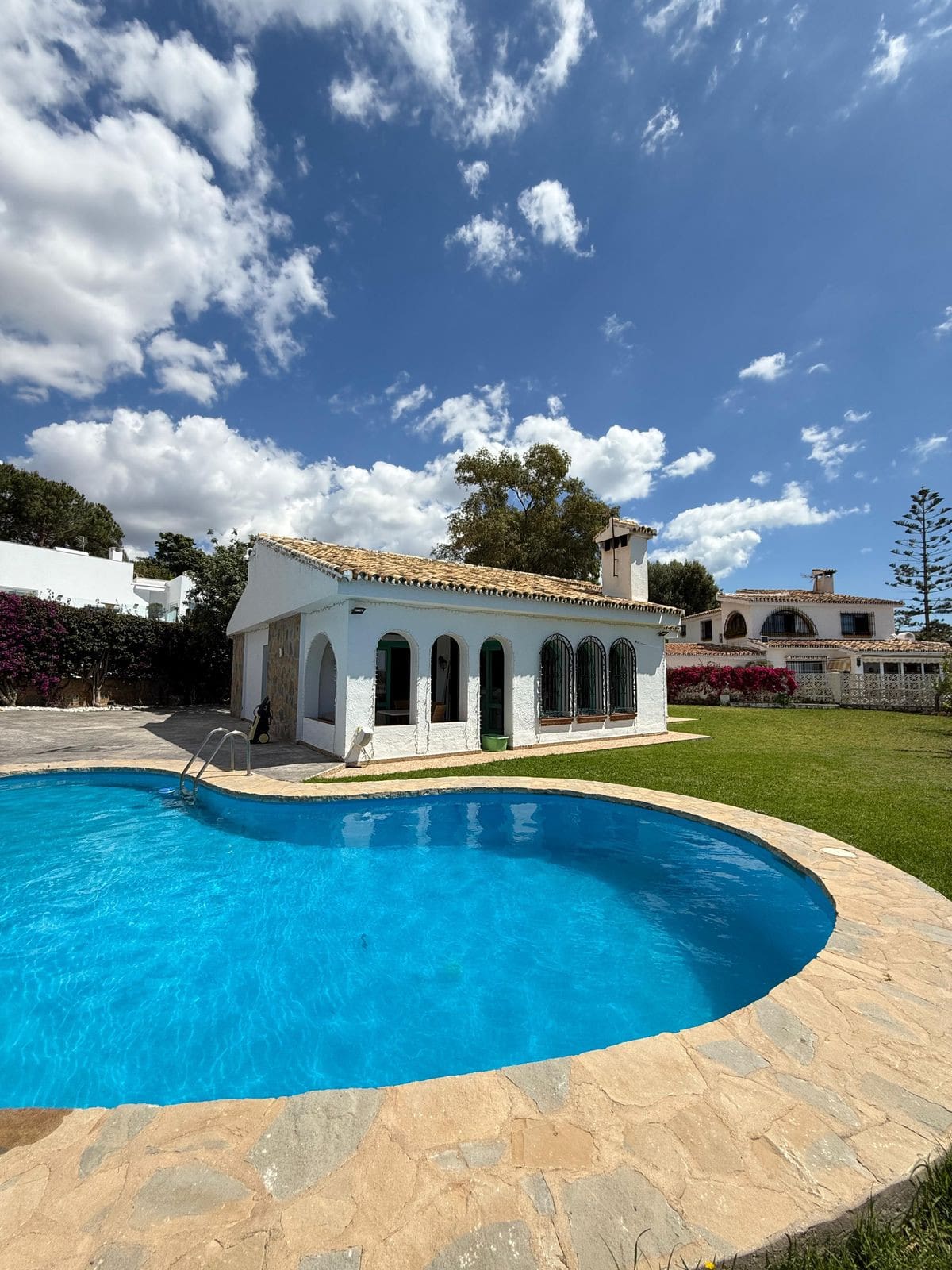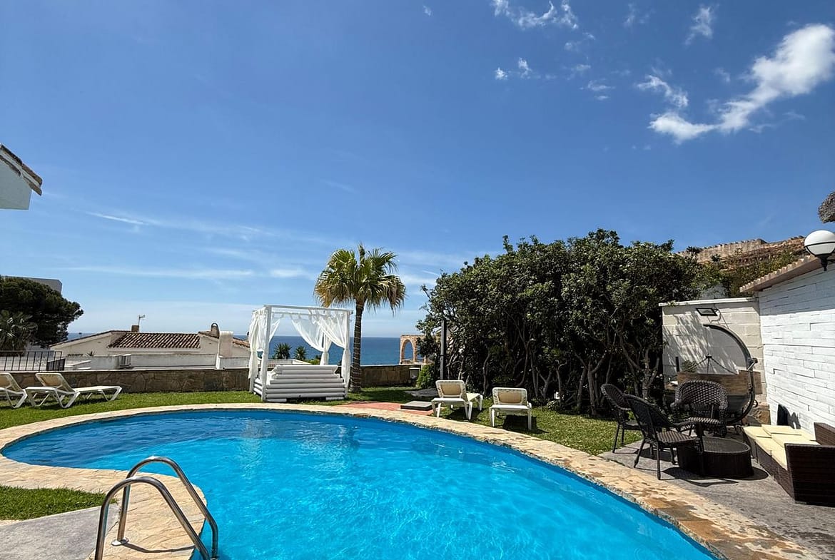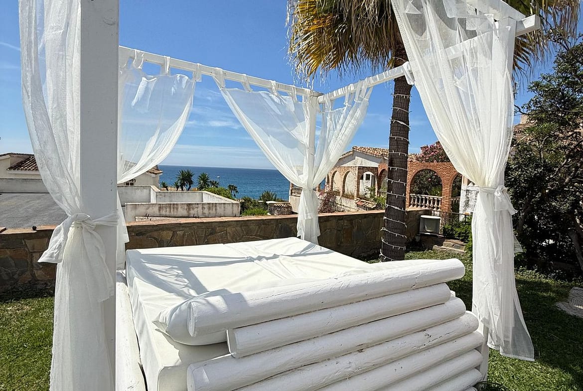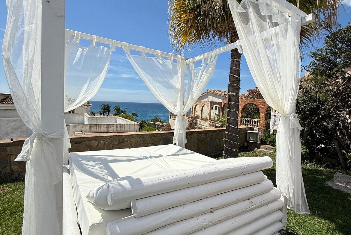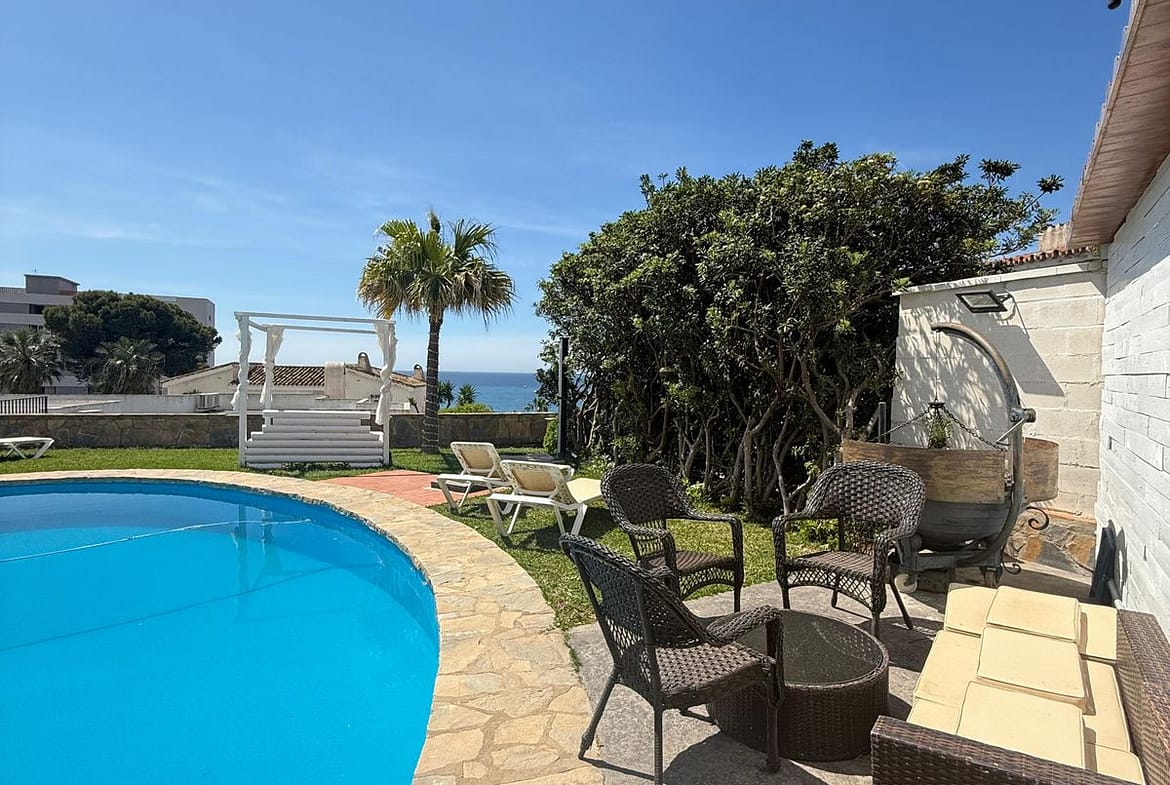 The exterior is a true oasis, with a well-kept garden and a private pool that invite you to relax under the Costa del Sol sun. It also has terraces ideal for enjoying the sea breeze or sharing with friends and family. The location is unbeatable, in a quiet and exclusive residential area, just 500 meters from the beach and close to schools, supermarkets, various leisure and dining options.