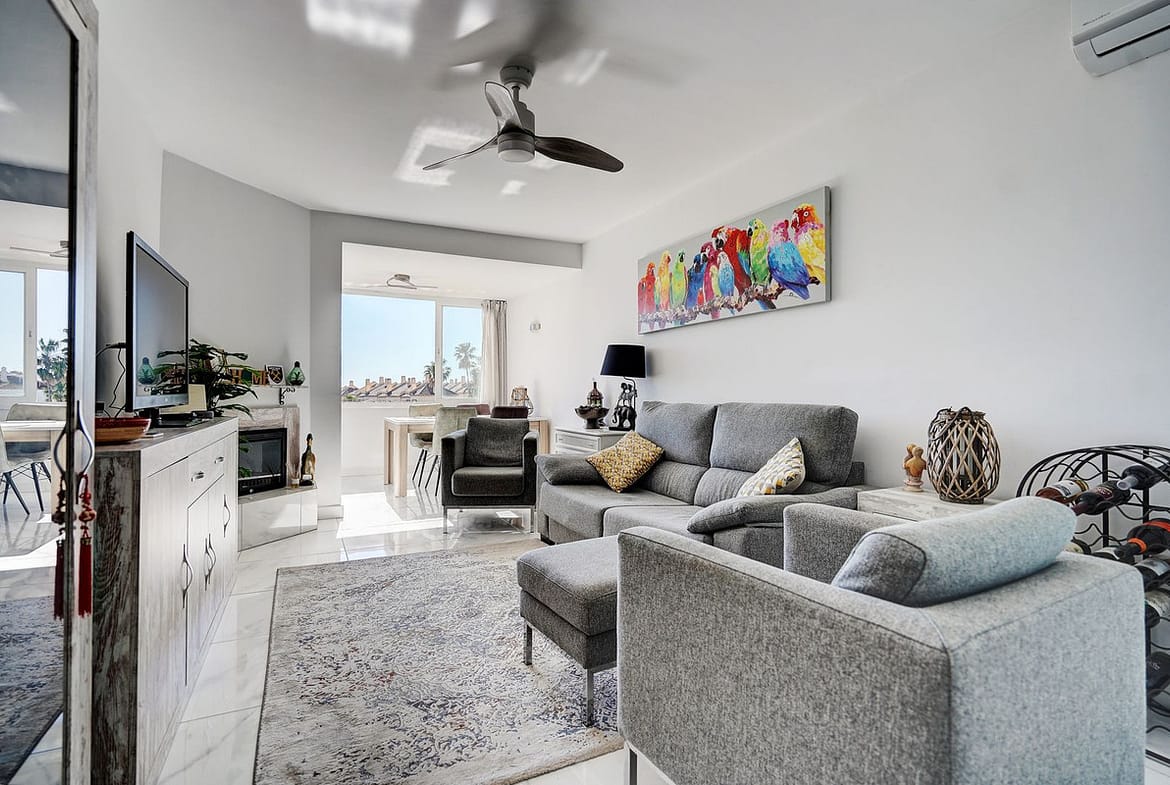 This fully renovated 2 bedroom bungalow for sale in Calahonda is a move-in-ready home in a fabulous location. The property has been upgraded throughout to a very high standard and enjoys sea views from the main living area and terraces. The area is well connected, with easy access to Marbella within 20 minutes and just a short 25 minute drive to Málaga Airport.
