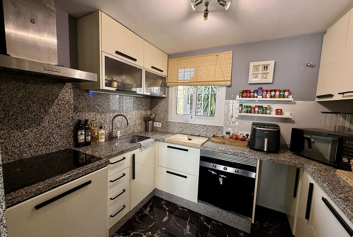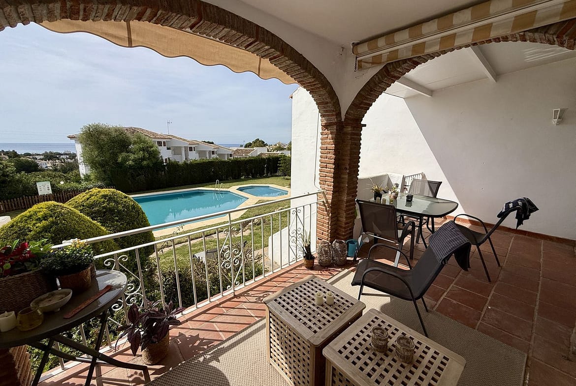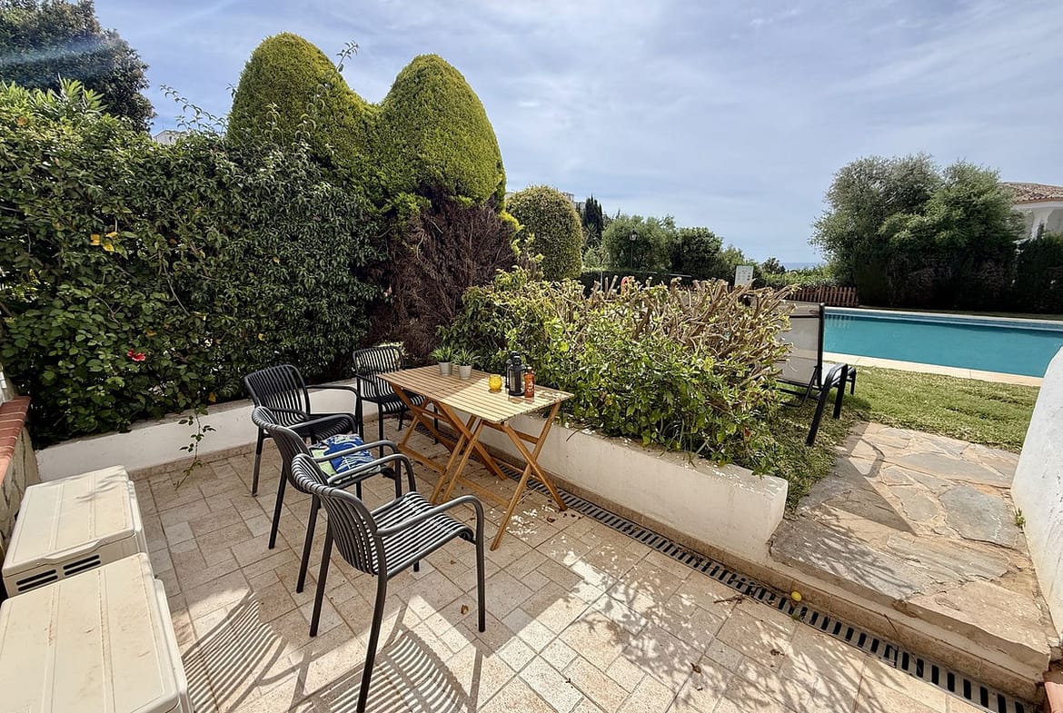 Set within a well-maintained and intimate urbanisation of just 17 homes, the property enjoys access to a lovely communal pool and mature landscaped gardens, creating a peaceful and private atmosphere. The home is in excellent condition and benefits from air conditioning (hot and cold), a fireplace, marble flooring, double glazing, and fibre optic internet, ensuring both comfort and modern living. From the property, you can enjoy pleasant views of the sea, gardens, and pool.