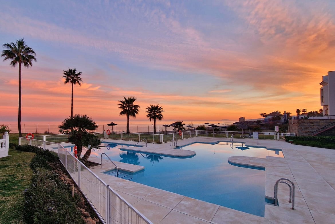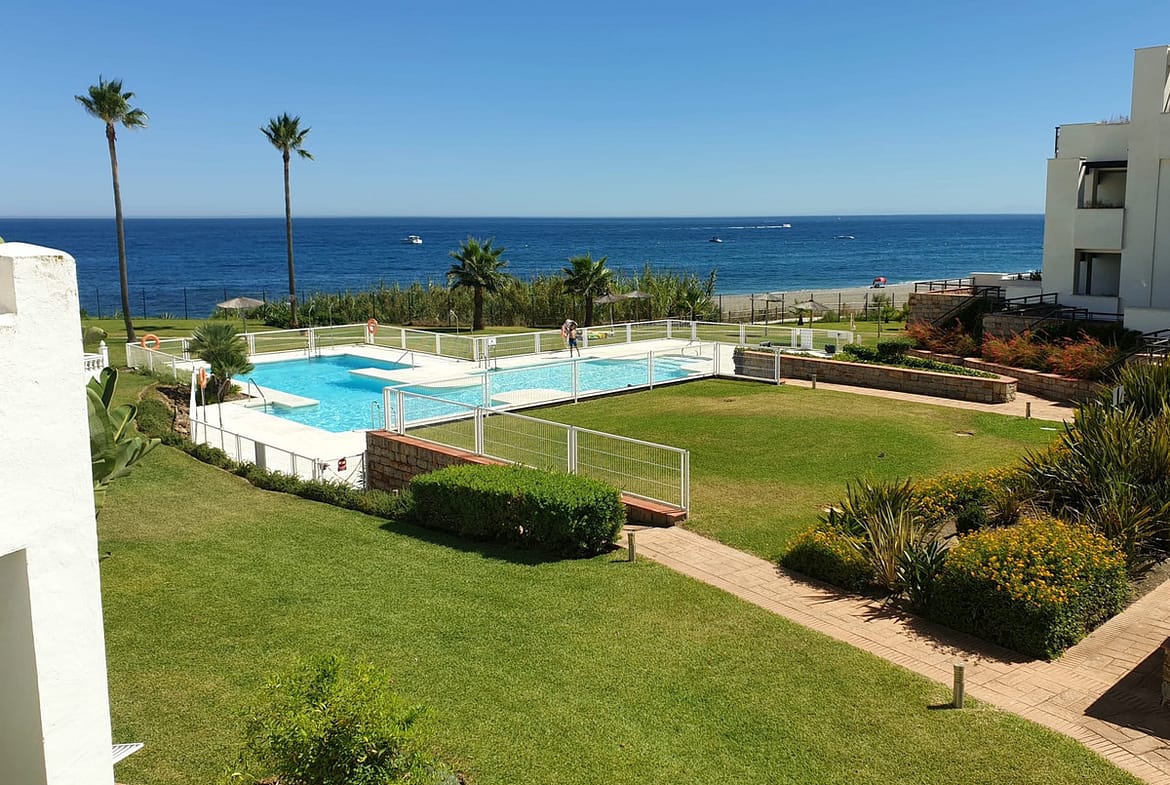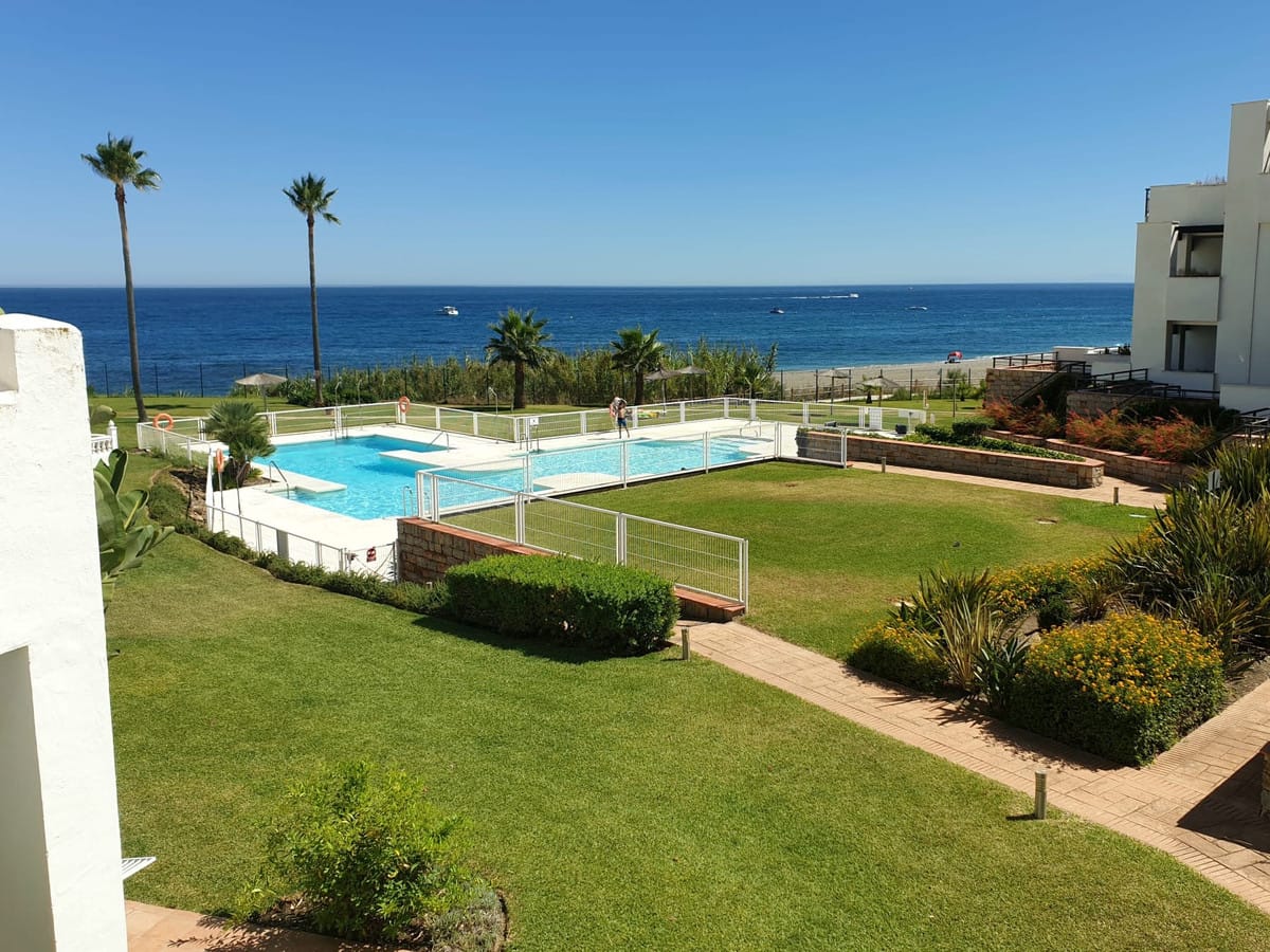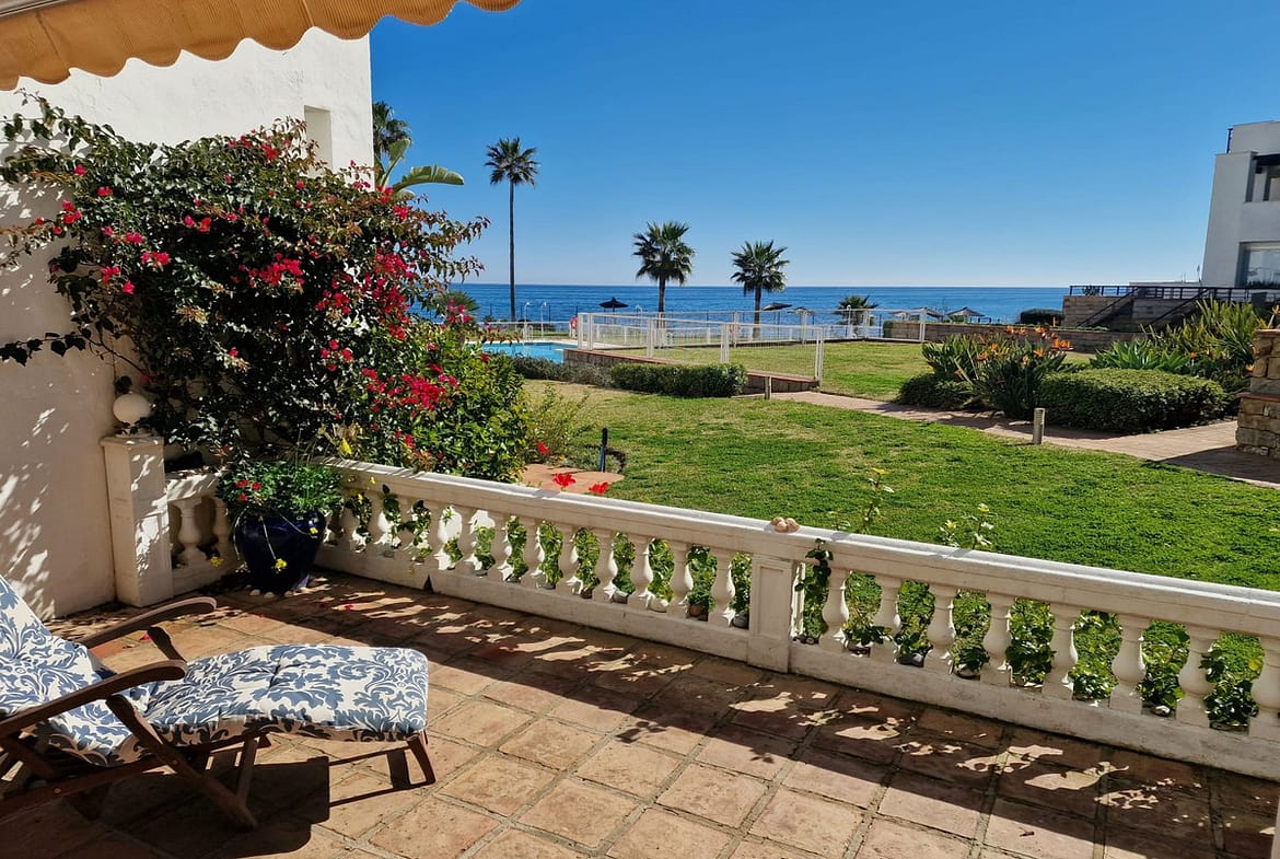Located within the exclusive beachfront community of Casares del Mar, this south-facing house represents a rare opportunity as the only house currently available for sale within the urbanisation, offering uninterrupted sea views in a gated and beautifully maintained setting.
