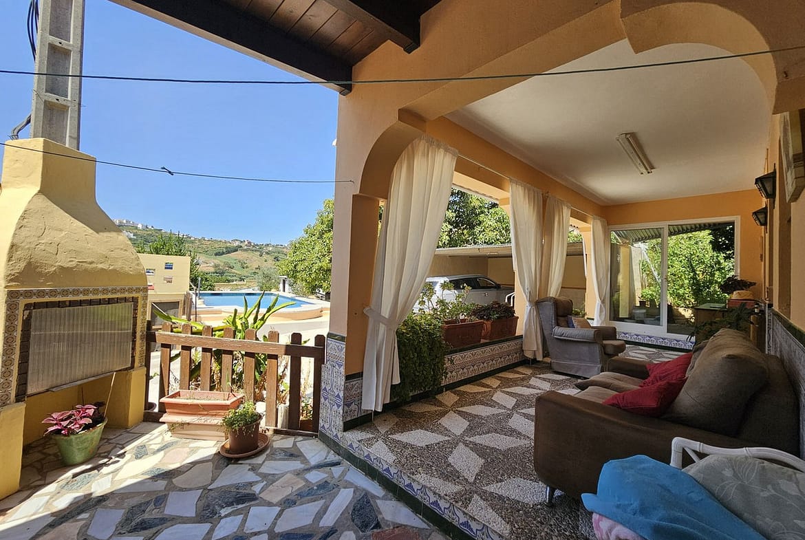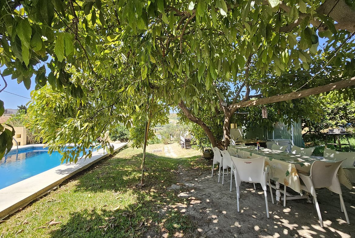 A wonderful country house-style home, but like a luxury detached house, this house consists of two bedrooms and a spacious bathroom with a shower. Then there's an inside kitchen, a cozy, comfortable living-dining room, and everything in good condition. But this property is clearly for those who prefer to live life outdoors, under the stars, close to the beach, and eating fruit and vegetables from their own land. Outside the house, there's a large veranda with plenty of space for the whole family, an outdoor fireplace, an outdoor kitchen, and a super-nice pool, with plenty of shade from the mature plants and trees that some have been caring for for 40 years.