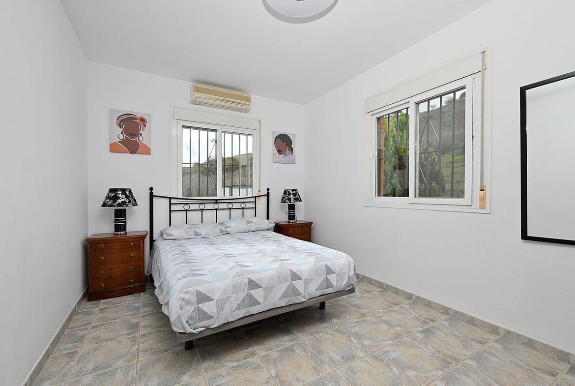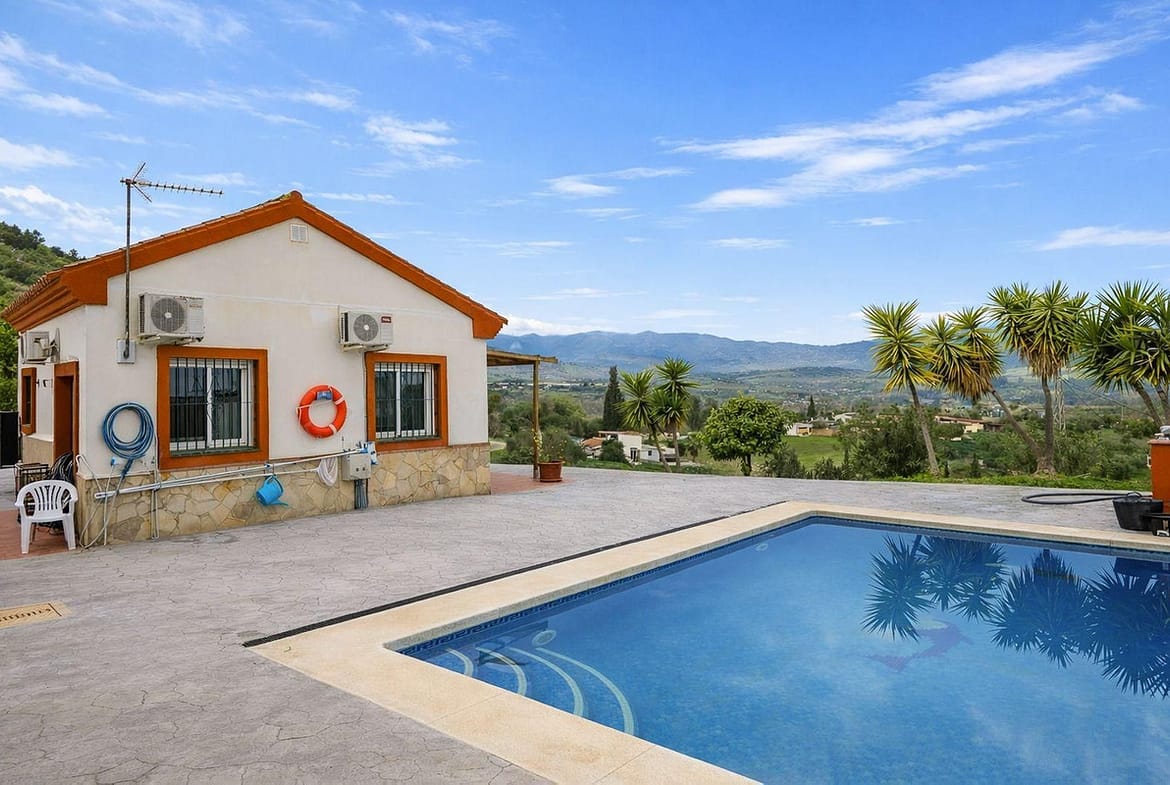 Charming country cottage in excellent condition, currently licensed for holiday rentals and ideal as a second home or investment. The single story house features two double bedrooms, a full bathroom, a fully equipped open-plan kitchen and a living room with direct access to the entrance porch. The over 6,000m² plot is partially fenced, with a fully paved access ramp leading to the parking area. There is a barbecue and a private 8x4m swimming pool surrounded by a terrace offering spectacular views of the valley. Two water tanks (one 20,000L and another with 8,000L) are also included. The property is located 10 minutes from the town of Coín and 30 minutes from the coast and Málaga city.