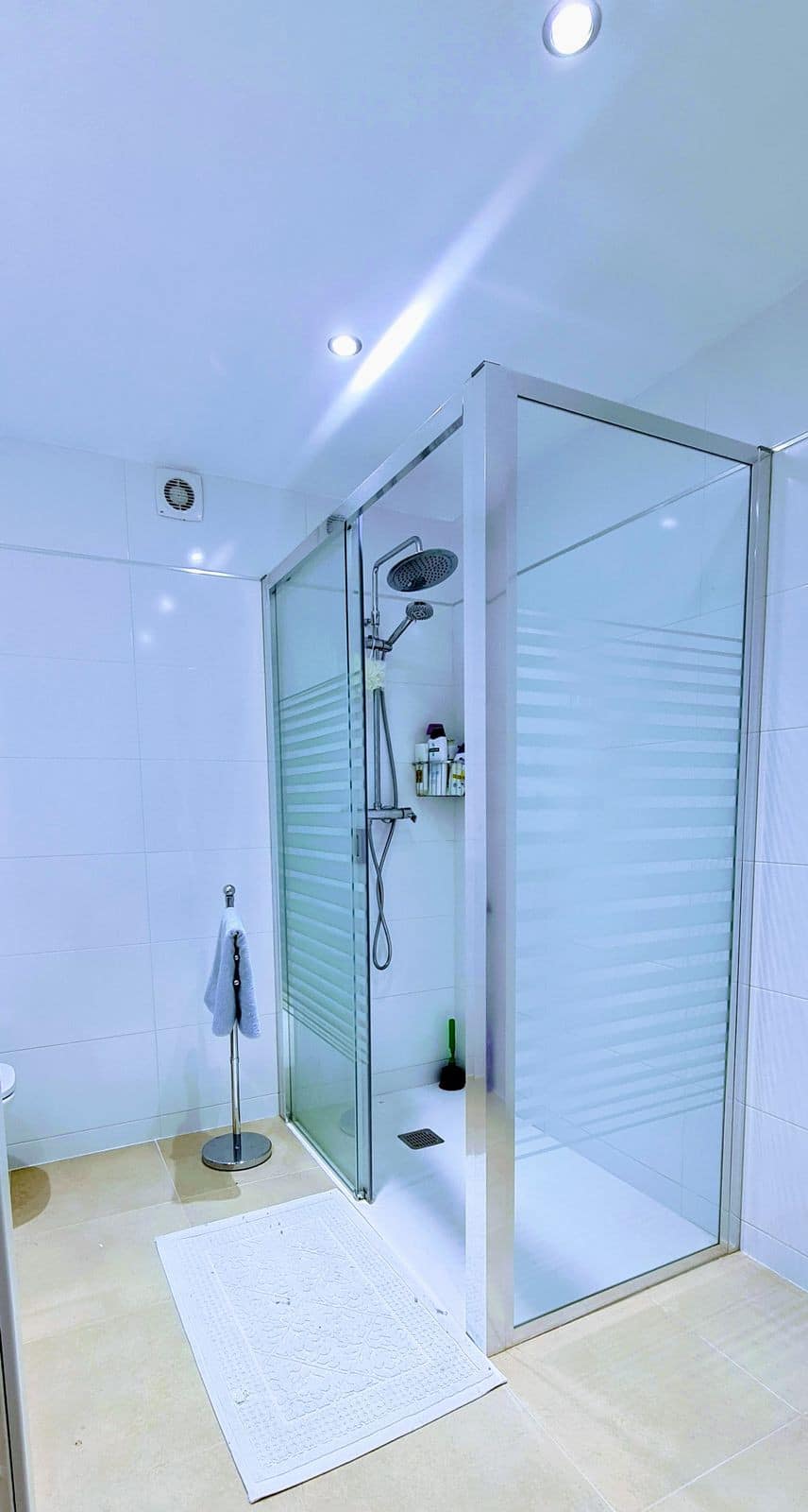 Downstairs, both double bedrooms open directly onto a third sunny terrace, offering a tranquil retreat to start and end your day. A modern family bathroom with an oversized walk-in shower, plus a dedicated home office area, completes the functional and flexible interior layout.