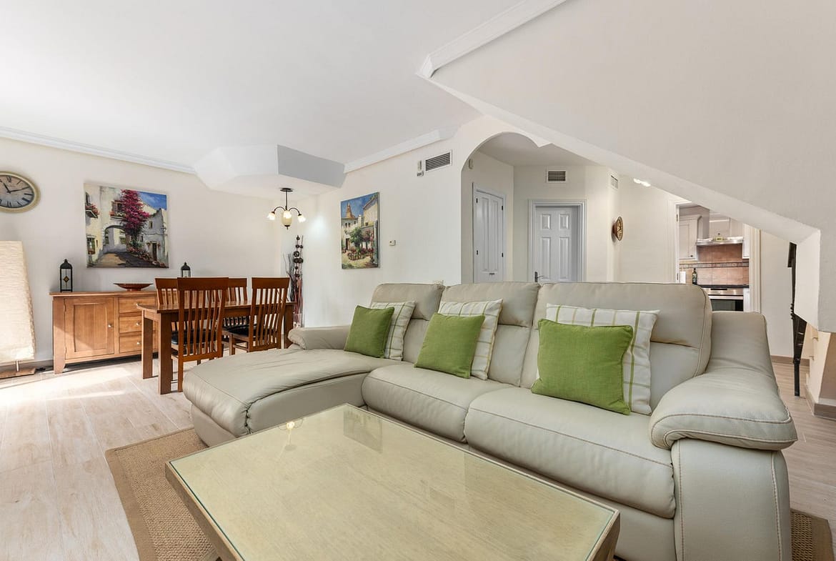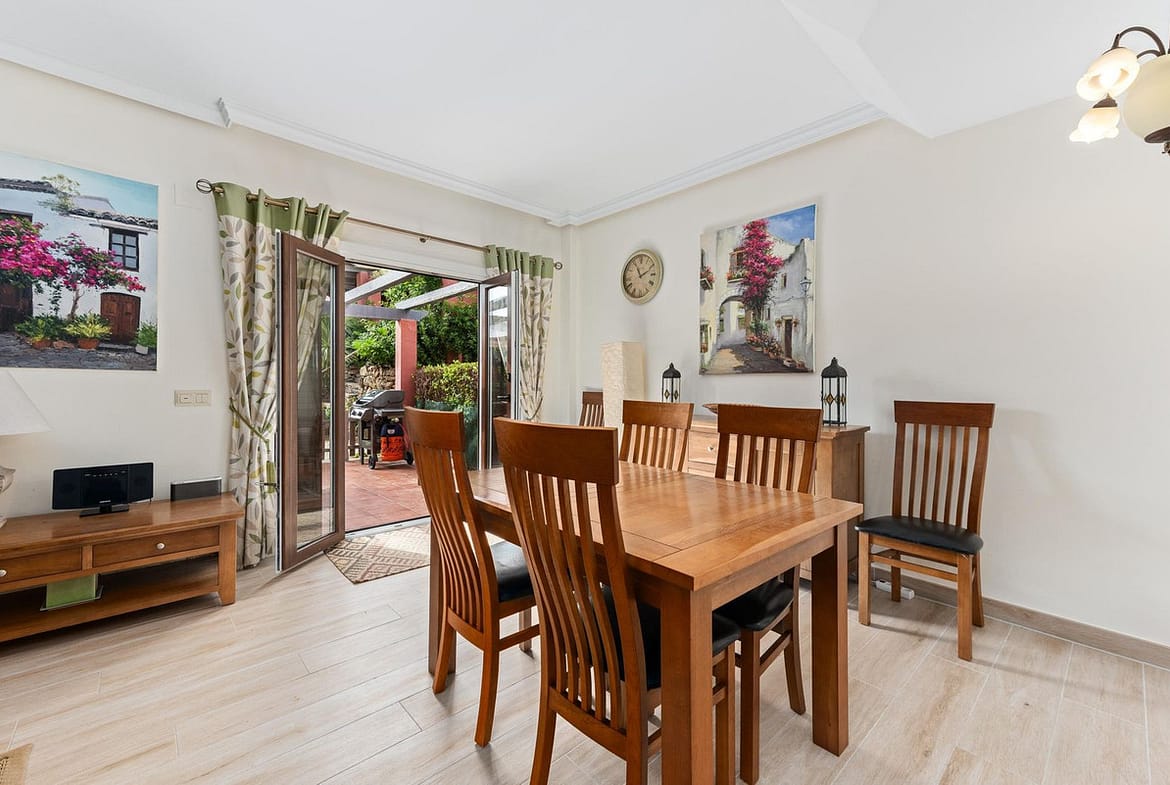 This well-presented two-bedroom townhouse sits in Villacana, a well-known beachfront community with a traditional Andalusian pueblo layout, calm pedestrian pathways, and plenty of greenery.