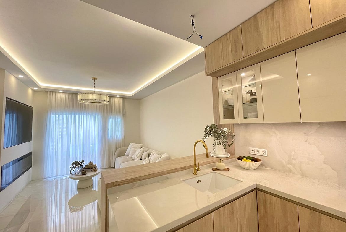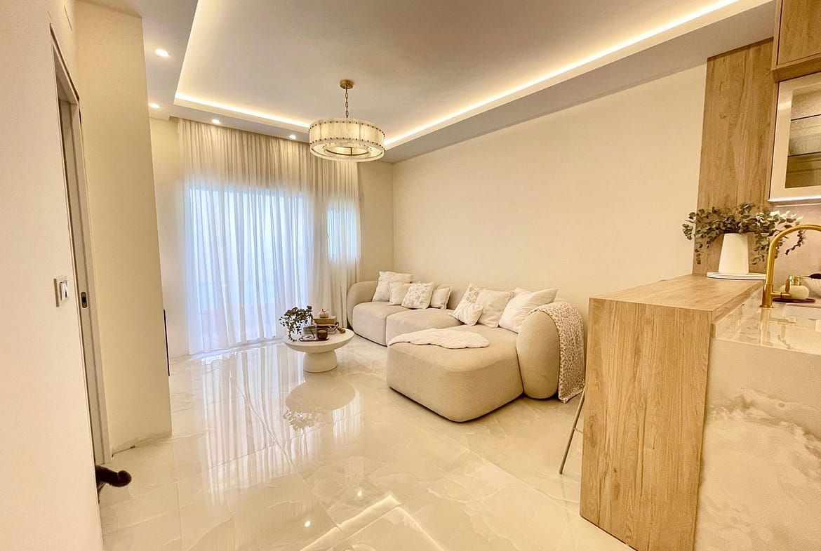 Completely refurbished to the highest standards, it features 2 spacious bedrooms and 2 elegant bathrooms, a modern open-plan kitchen, and a bright living area with direct access to the outdoor space.