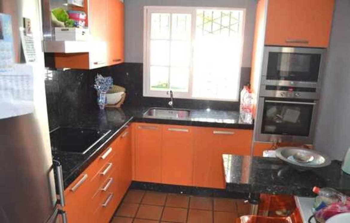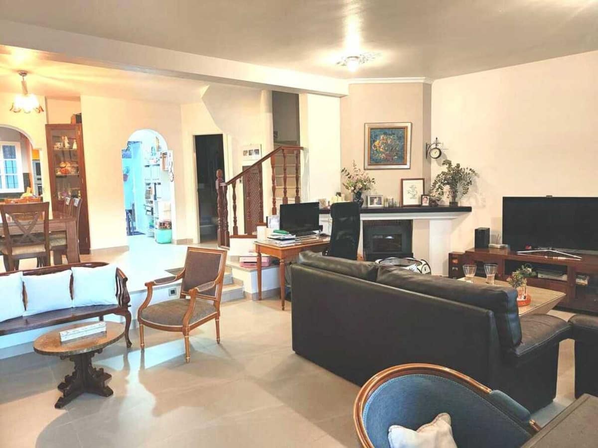 The house has 2 spacious bedrooms, both with access to a charming private balcony, and three full bathrooms, offering comfort and privacy. The kitchen, fully equipped with appliances, is perfect for food lovers.