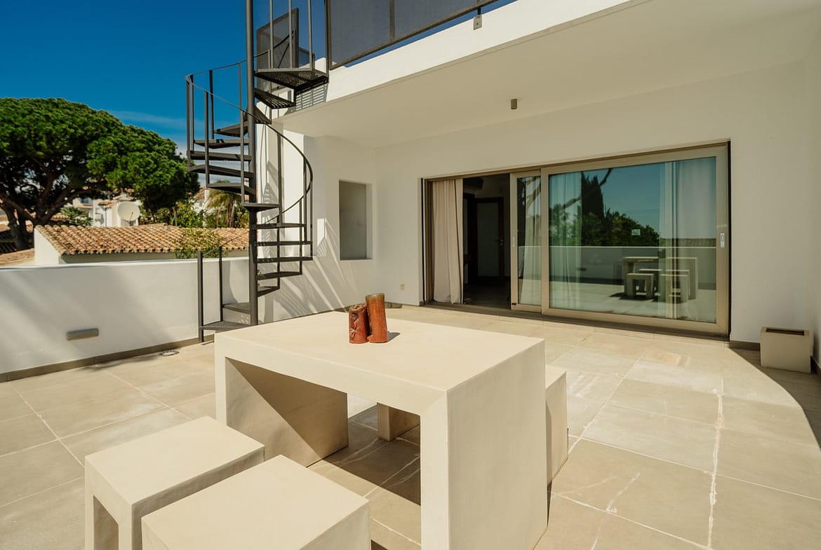 This stunning 2-bedroom duplex holiday rental Marbella offers the perfect blend of contemporary luxury and Mediterranean charm in the exclusive El Rosario area of Marbella East. With 190 square meters of living space, 3 bathrooms (2 en-suite), and a magnificent 1000 square meter private plot, this beachside vacation villa Costa del Sol provides an exceptional retreat for up to 4 guests.