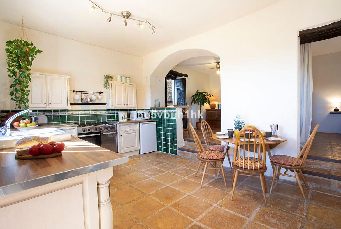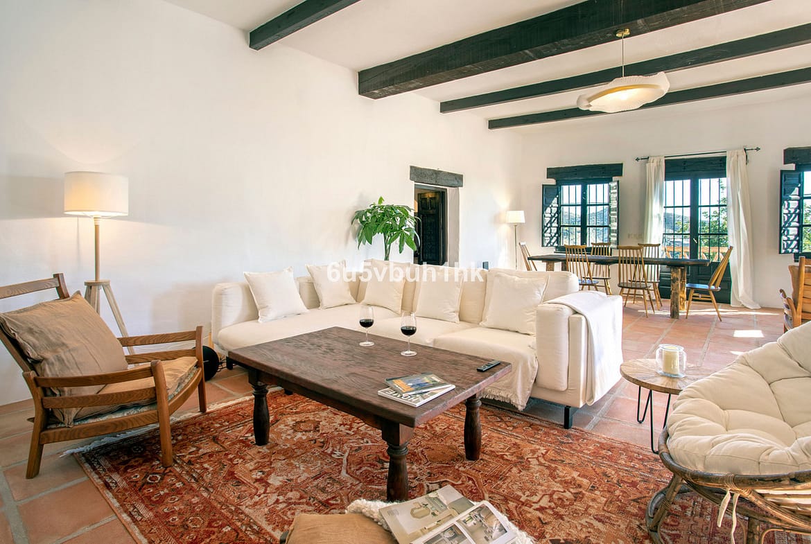 The property also boasts a thoughtfully designed garden with mature trees, adding to its authentic charm and natural beauty. With its beautiful wooden details and timeless design, the finca exudes warmth and character.