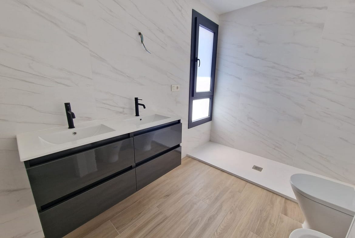 128.25 m² built on a 138 m² plot. It has 2 bedrooms, 2 bathrooms, living room, kitchen, terrace, private garden, parking area within the plot, basement with natural light and excellent sea views.