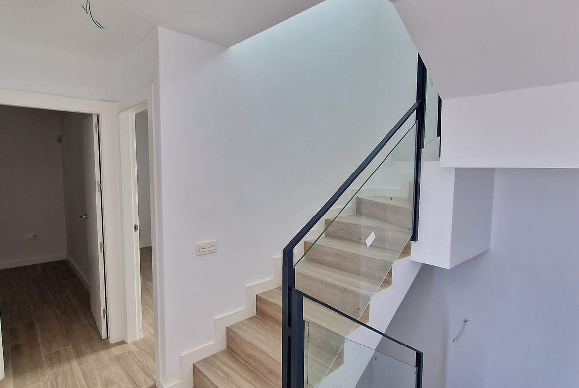 207.45 m² built on a 240 m² plot. It has 3 bedrooms, 3 bathrooms, living room, kitchen, terrace, private garden, private garage for 2 vehicles, basement with natural light and excellent sea views.