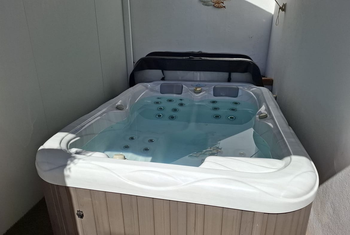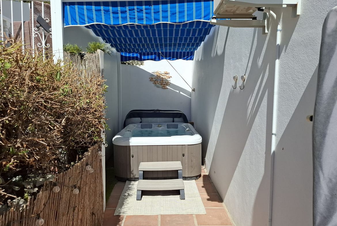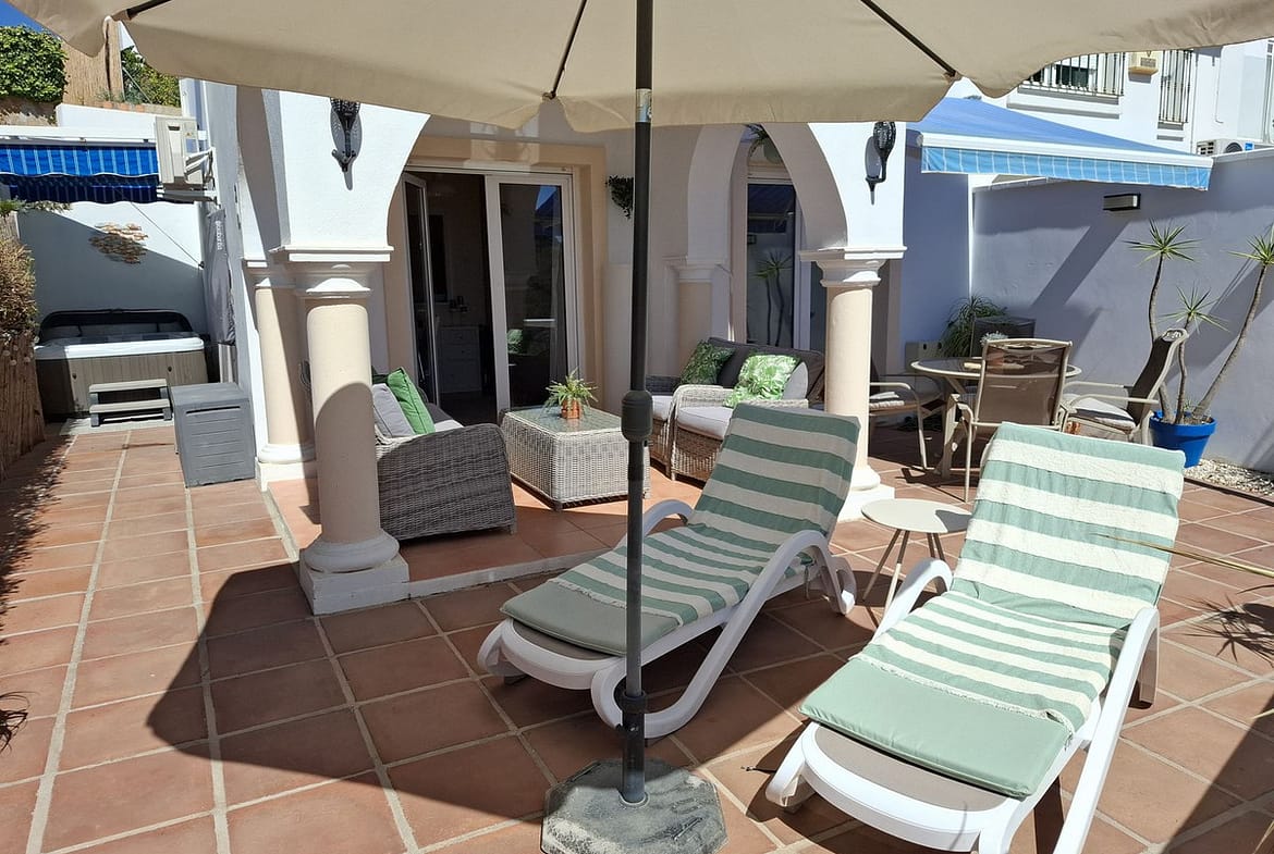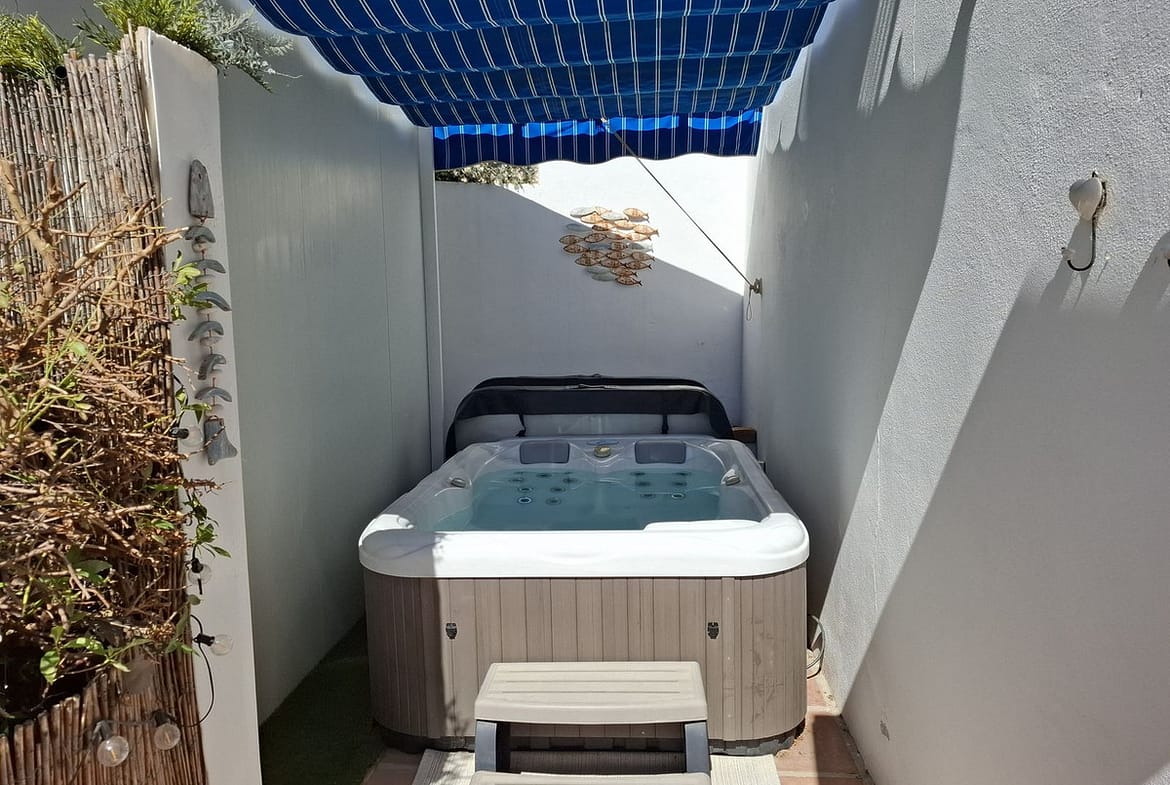 Big and very private terrace south east facing with jacuzzi on the side of the house and a patio on the front side