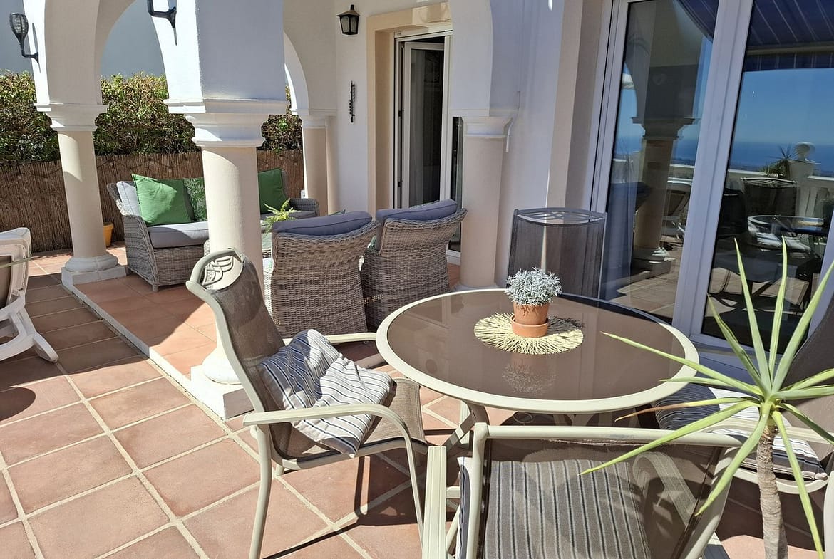 This bright and spacious 2-bedroom, 2-bathroom home offers the perfect combination of traditional Andalusian character and modern upgrades. Enjoy spectacular panoramic mountain and sea views from your large private terrace with jacuzzi and patio – ideal for sunrises and year-round outdoor living.
