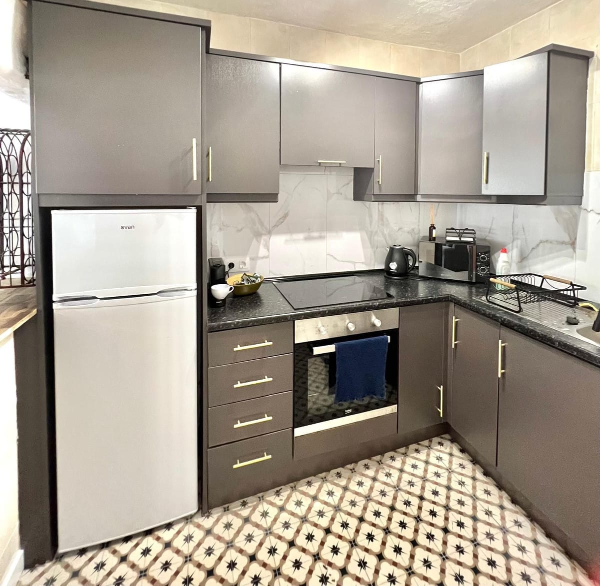 It features a large living room wich opens onto the kitchen. It is fully equipped with all appliances.