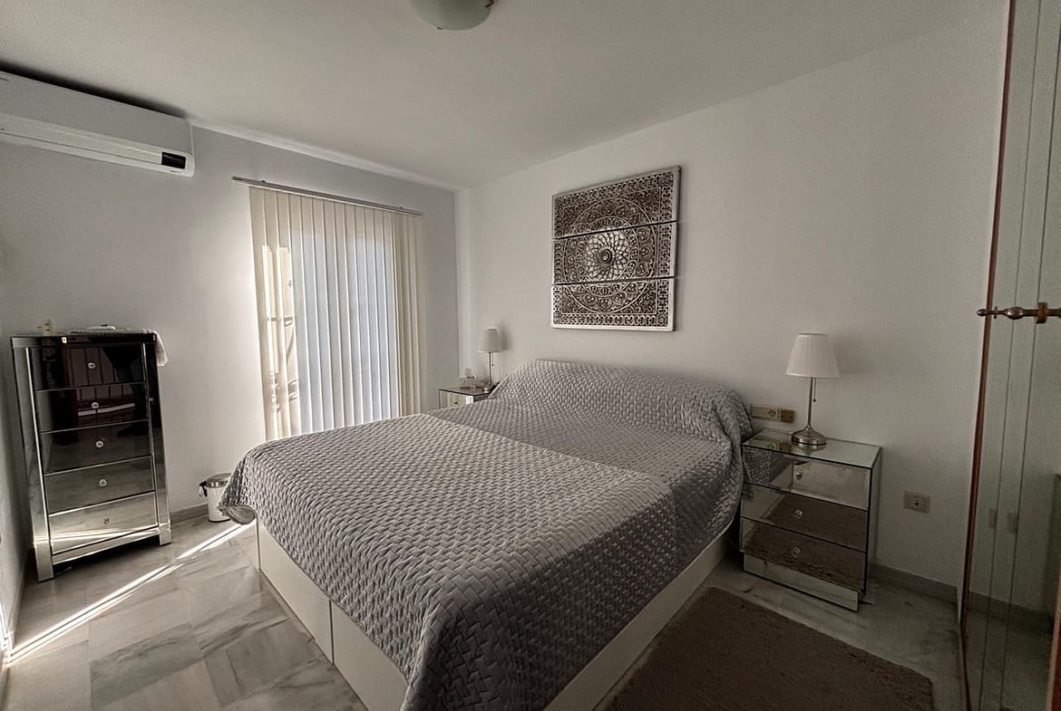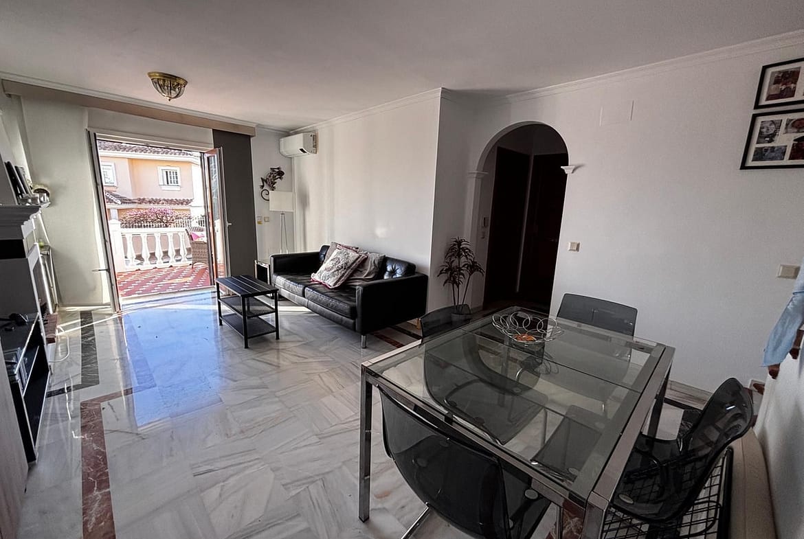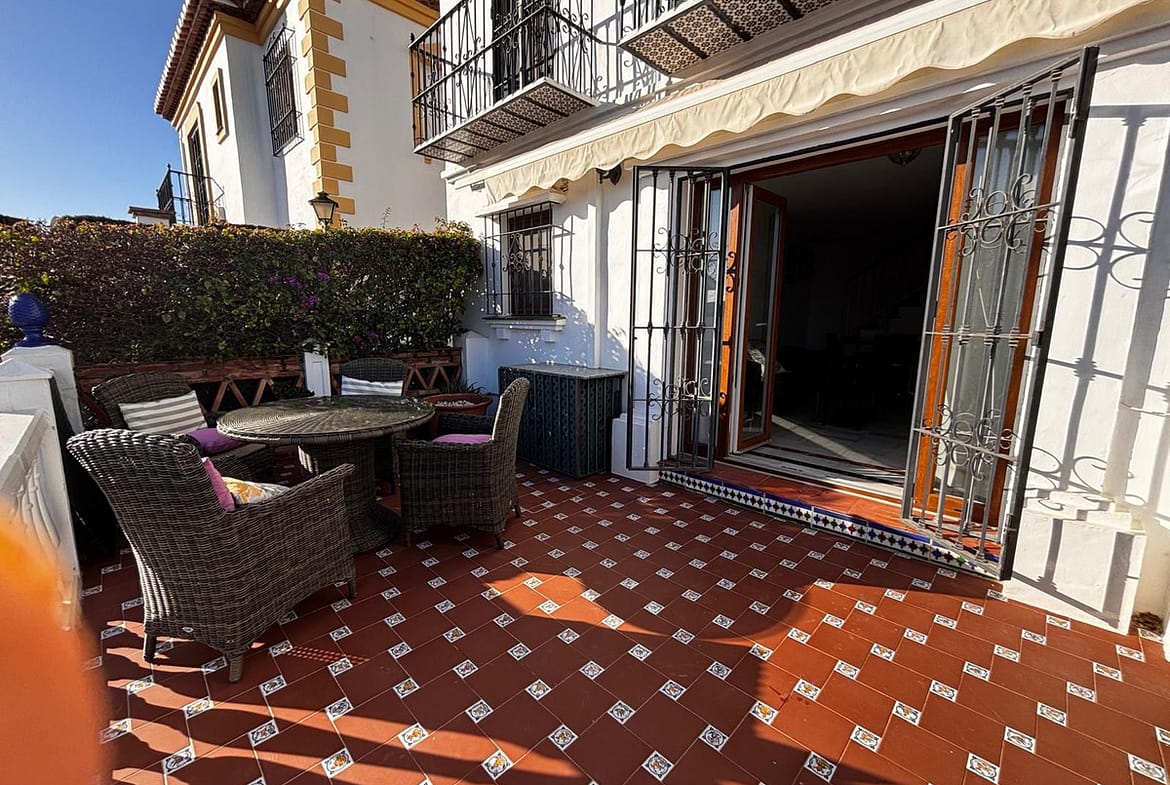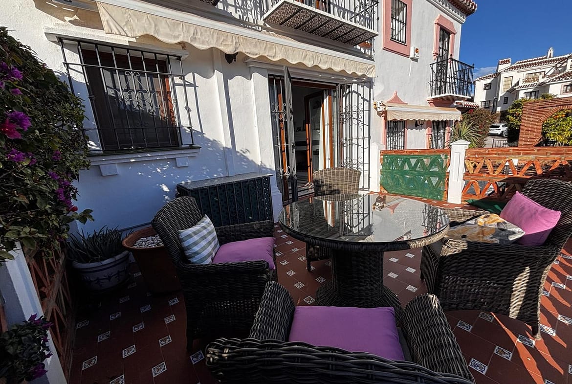 Beautiful 2-bedroom south-facing townhouse located in the exclusive Puebla Aida urbanisation, an iconic Andalusian-style development in Mijas Golf. Impeccably maintained, the community offers four communal swimming pools and is renowned for its charming corners, picturesque alleys, squares, and fountains throughout the complex.