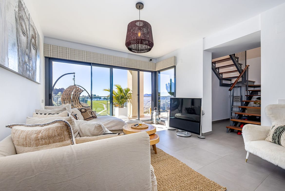 The building complex was completed in 2018 and is the latest and newest community to be welcomed to the golf urbanisation. Each property was built to latest standards of the time and include low-cost heating and cooling technology, smart lighting and electric window blinds, for example. Additionally, the communal pool is well situated and offers staggering views of the mountains and beyond.