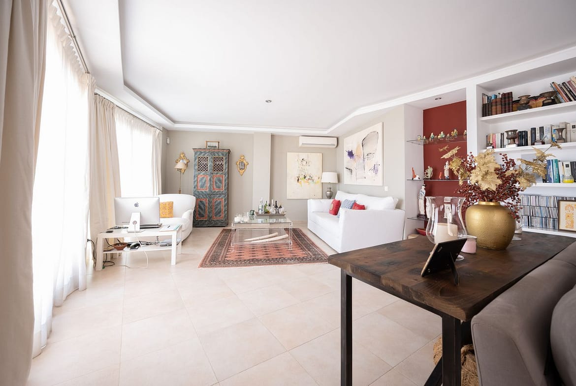Nestled in the charming Andalusian-style urbanization of Pueblo Los Monteros in Altos de Marbella, this extraordinary apartment blends traditional elegance with modern sophistication. Originally two separate side-by-side duplex properties, this residence has been skillfully combined into a single, expansive apartment by removing the dividing wall downstairs and upstairs, creating a seamless and open layout. The property retains two fully equipped kitchens, offering flexibility for entertaining, extended family living, or rental potential, all while maintaining a cohesive and spacious feel.
