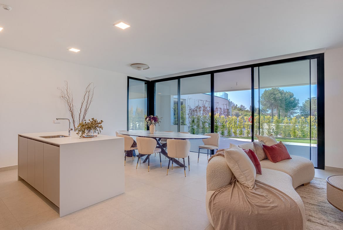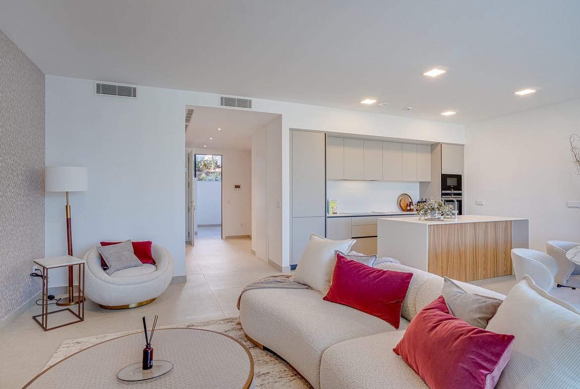 Stunning south-facing ground-floor apartment located in the exclusive Marbella Sunset residential complex in Cabopino. This contemporary home combines modern design with comfort and elegance, featuring a spacious private terrace ideal for relaxing or enjoying outdoor dining under the Mediterranean sunshine.The property offers three bedrooms and three bathrooms. The fully equipped kitchen is finished with high-quality materials and designed for both style and functionality. The bright and spacious living-dining area connects seamlessly with the terrace and outdoor space, creating an inviting indoor–outdoor living experience. Additional features include hot and cold air conditioning and two private parking spaces. The residential complex boasts beautifully landscaped gardens and swimming pools, providing an exclusive and tranquil atmosphere. The area also offers a great selection of nearby amenities, including restaurants, schools, the beach, and golf courses, making this property an ideal option for both permanent living and as a second home.