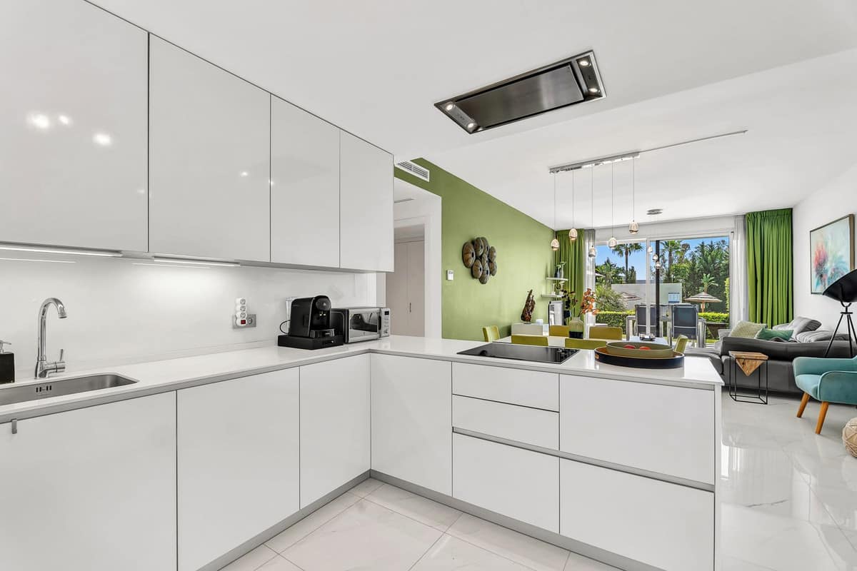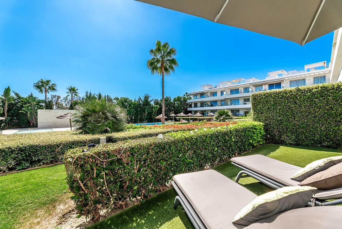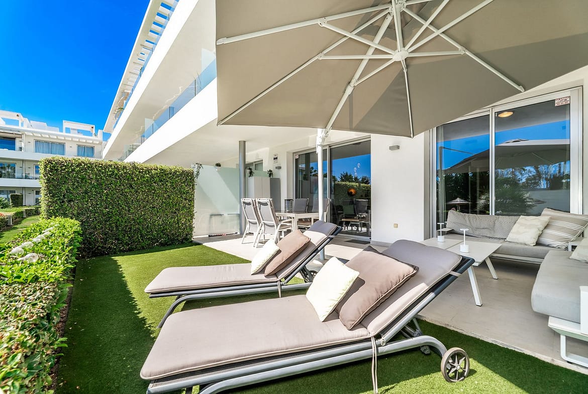 Modern garden apartment in excellent condition situated on the best position of the urbanisation. Located on walking distance to supermarkets, pharmacy and beach. Priced to sell with underground parking space and storageroom included.