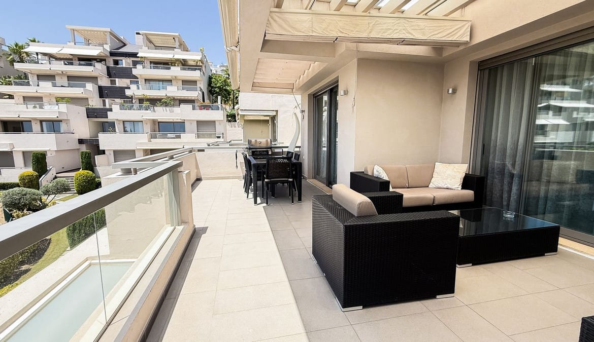 Fully renovated 3-bedroom southwest-facing garden apartment in Gazules del Sol, a fully gated and secured complex walking distance to Atalaya International School, Benahavís.