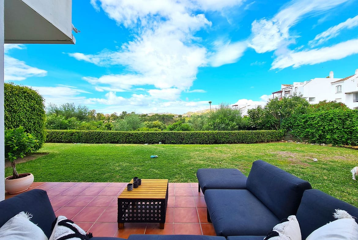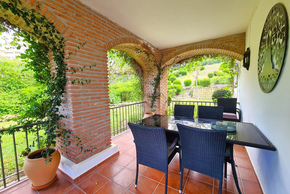 Located in a quiet and safe residential area, surrounded by nature, this apartment is very well connected to the AP7 motorway, which connects the entire Costa del Sol. Just a 5-minute drive from Guadalmina Alta and the prestigious Atalaya School, with the beach, supermarkets, pharmacies, and restaurants 10 minutes away. The property was completely renovated in 2025, so everything is as good as new. Upon entering the apartment, we find an entrance hall leading to the spacious living-dining room with beautiful views of the garden, which also has access to a large, partially covered terrace. It also has a spacious, brand-new, modern kitchen equipped with high-end appliances and access to the separate laundry room. The property's bedrooms and bathrooms are distributed through a corridor. The spacious master bedroom features a large built-in wardrobe with access to and views of the terrace/garden. It also has a fully renovated en-suite bathroom in a contemporary style, equipped with a shower and a window that provides abundant natural light and ventilation. The two single bedrooms have built-in wardrobes and are bright. One of them has access to the garden. The second bathroom is located at the entrance to the hallway, connecting to the common areas of the house (living/dining/kitchen) and is located next to the two single bedrooms. This full bathroom also has a shower. The property enjoys the convenience of having a private parking space, in addition to enjoying the community gardens and saltwater pools. WE RECOMMEND A VIEWING!!