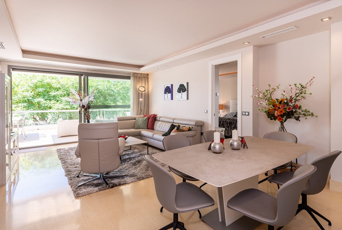 The apartment is very spacious and well-lit. The property has three bedrooms, all with en-suite facilities, as well as a generously proportioned living room and a fully equipped kitchen with Neff appliances. The terrace is accessible from the living room, kitchen and master bedroom, where you can enjoy the views.
