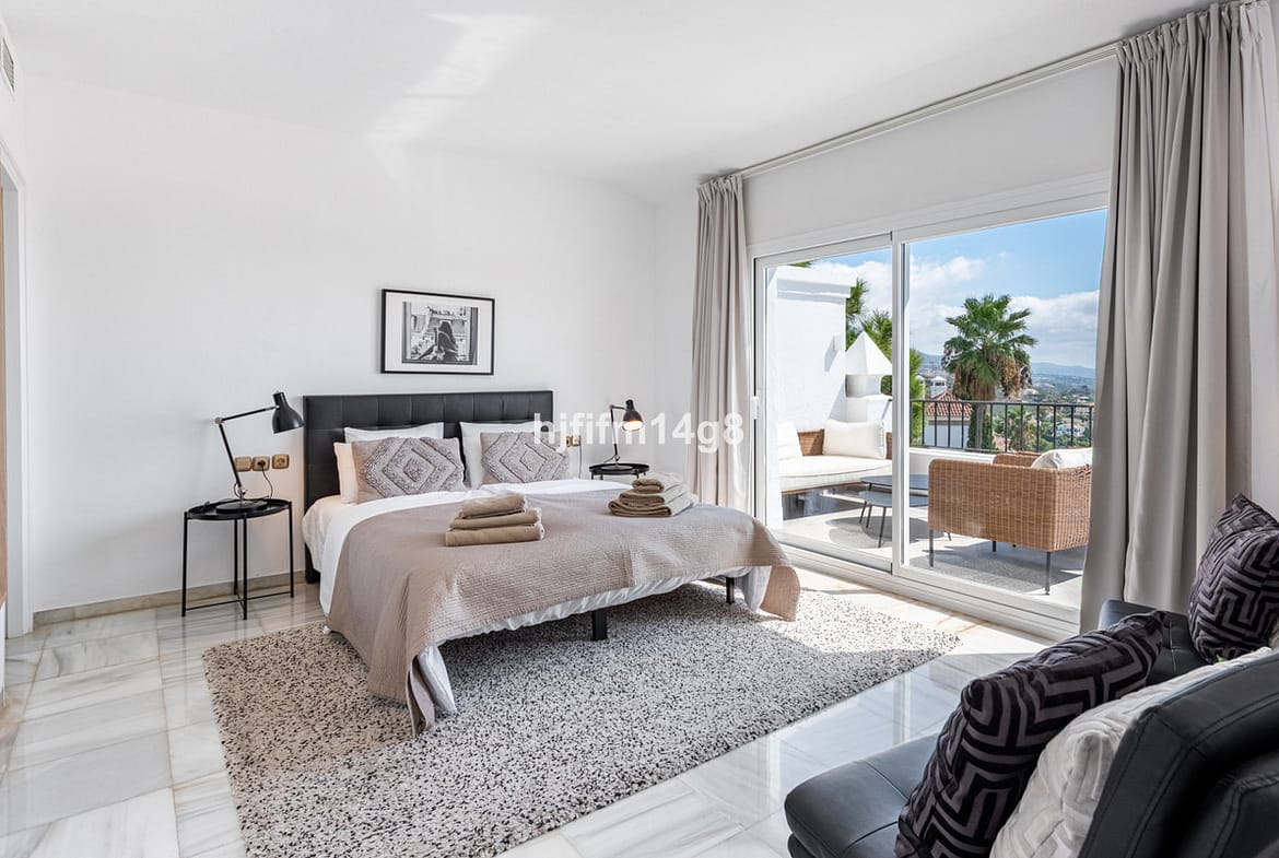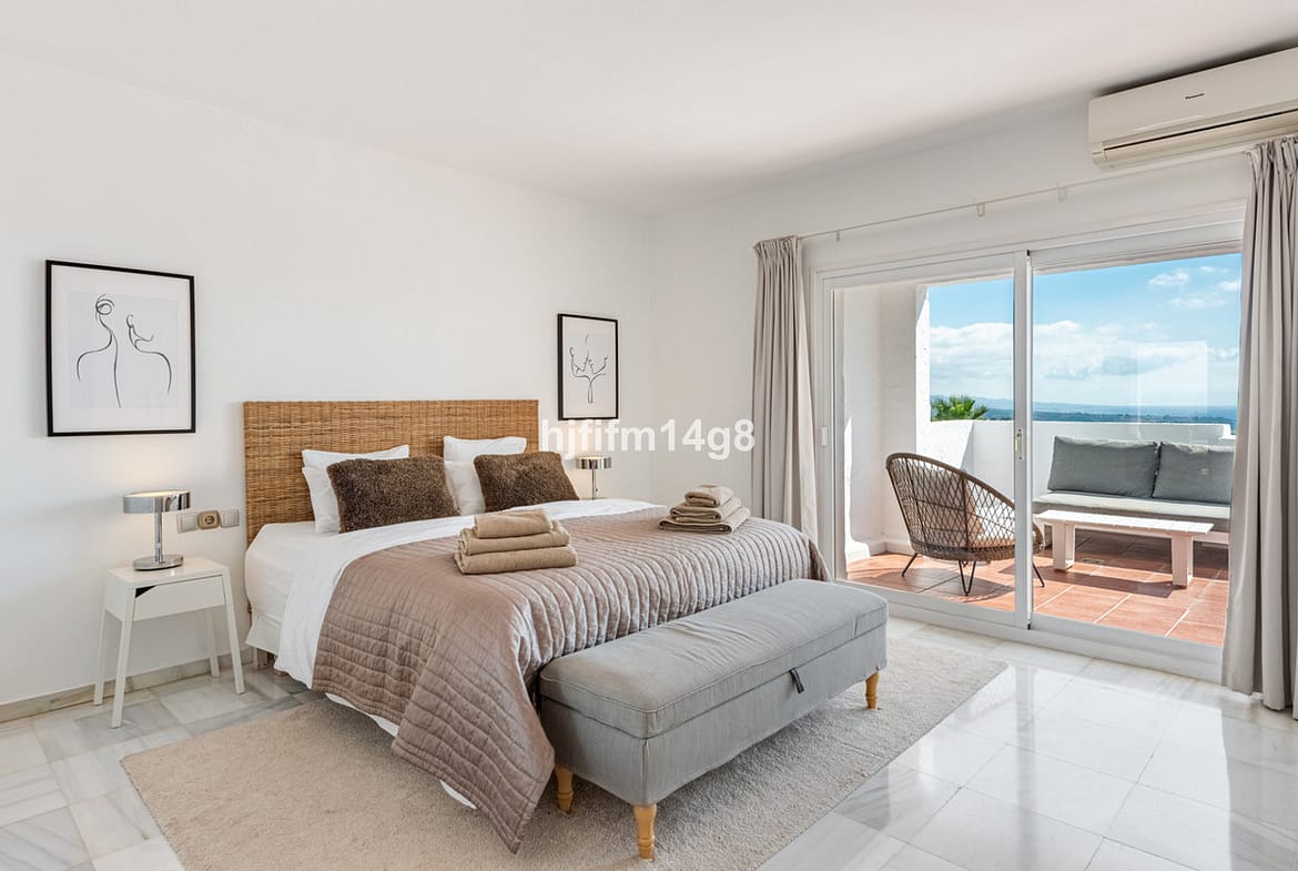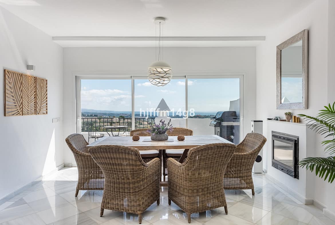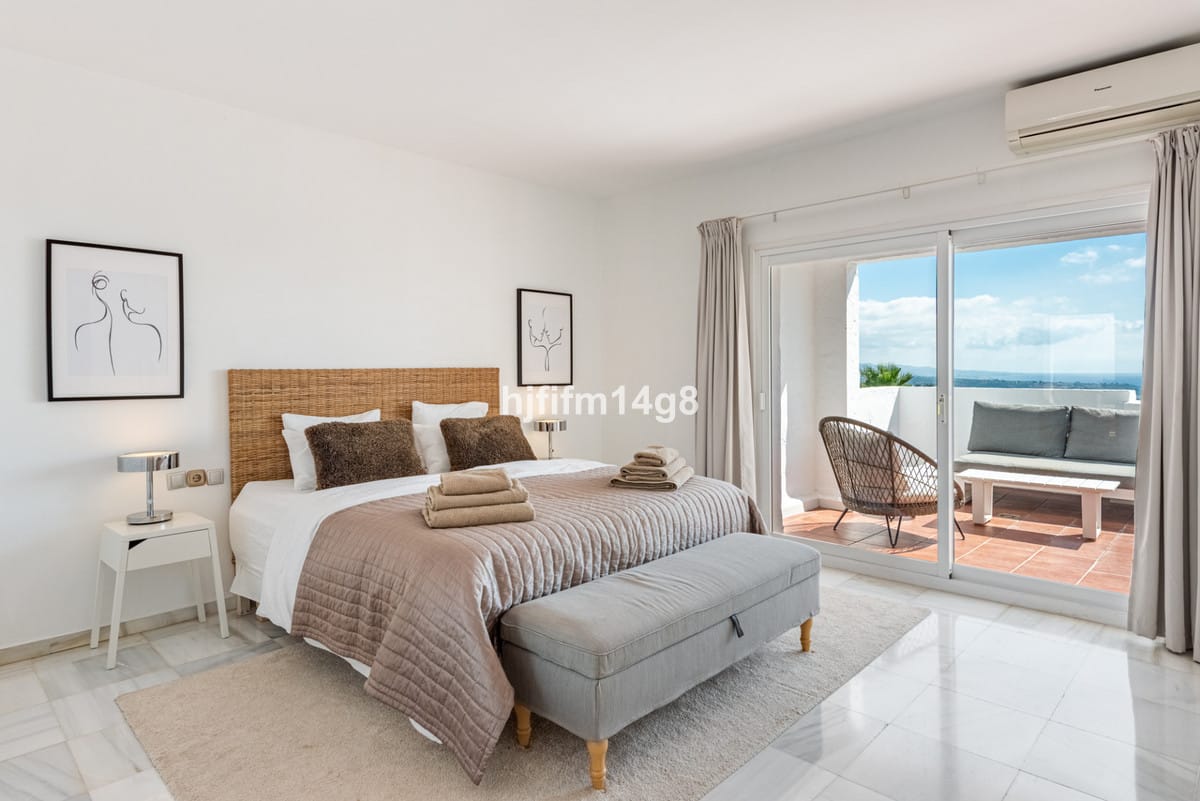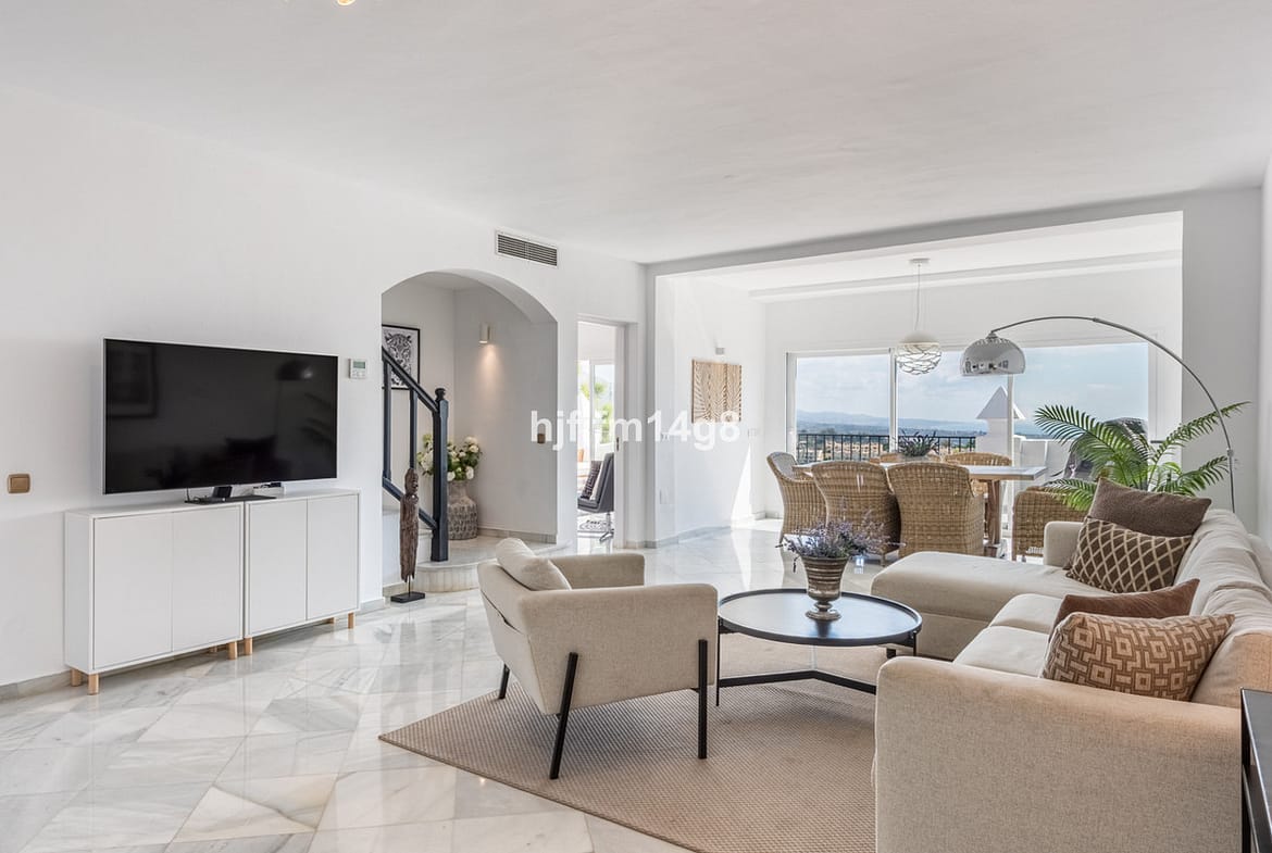 Discover a stunning apartment with the charm and feel of a townhouse in the exclusive Las Colinas de Marbella. This exceptional property, with a total of 241m² (152m² interior plus 89m² of terraces), combines space, natural light, and panoramic views, offering a lifestyle defined by elegance and comfort. From its terraces, you can enjoy sweeping vistas of the Mediterranean Sea, the famous La Concha mountain, and even the distant silhouette of Gibraltar.